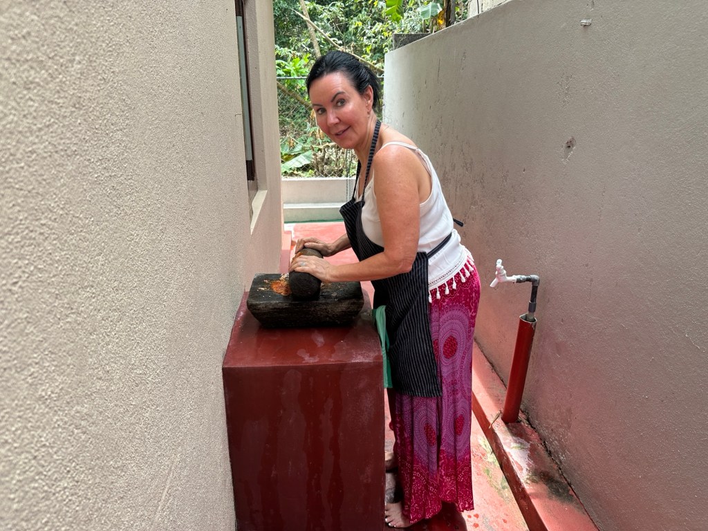 At breakfast we met up with Tina and Dave, our travel companions, who mentioned they were heading off to a 10am cooking class and asked if we’d like to join them. That was an easy yes! Before we knew it, we were hopping into an Uber and weaving our way through the villages along the way.