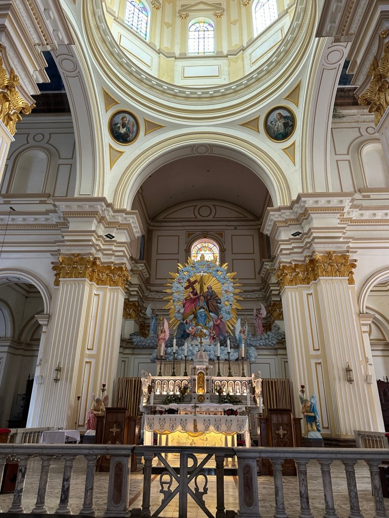 Back to the hotel, where at 4pm we gathered and met our guide Priya. We then hopped on our bus (a full size bus 9 guests!) for a short tour of Negomba. One of the first areas to be occupied by the Portuguese, Negombo is the heartland of Sri Lankan Christianity, with colourful wayside shrines dotting the roads and dozens of large churches. We had a look inside St Mary’s Church, the town’s principal place of worship.