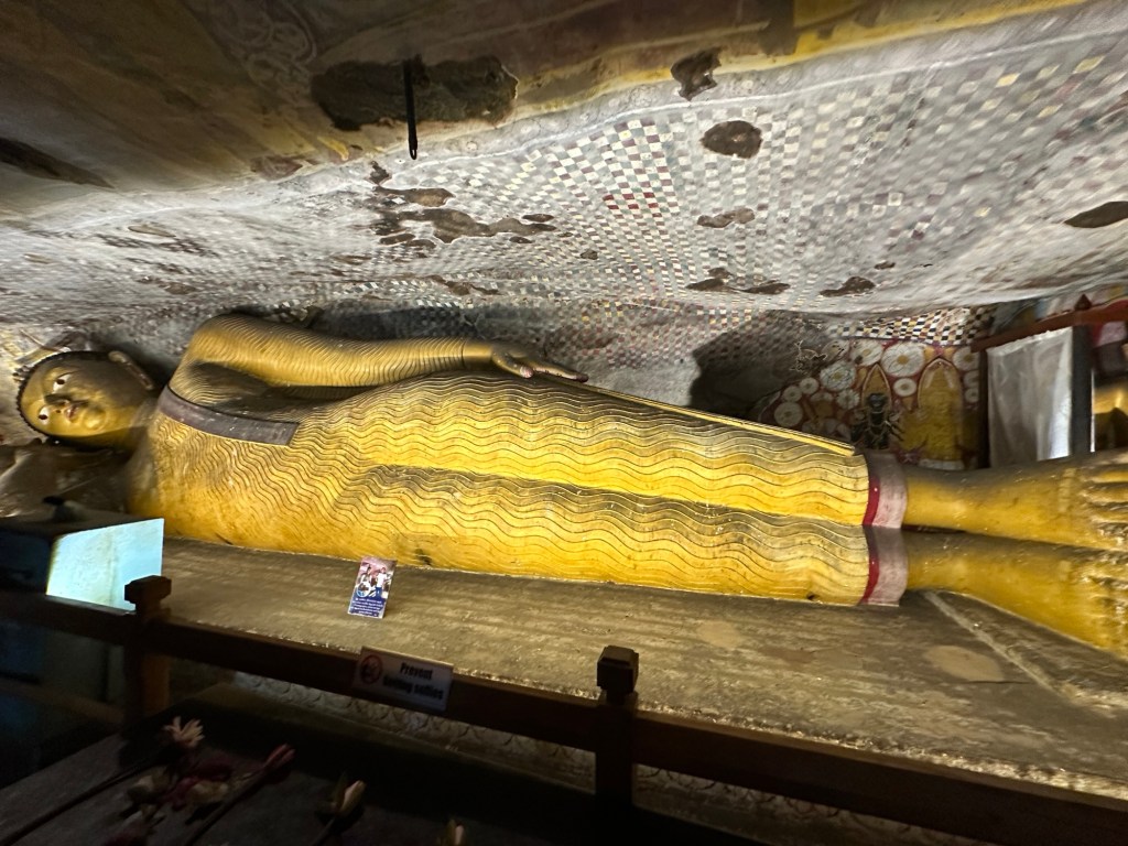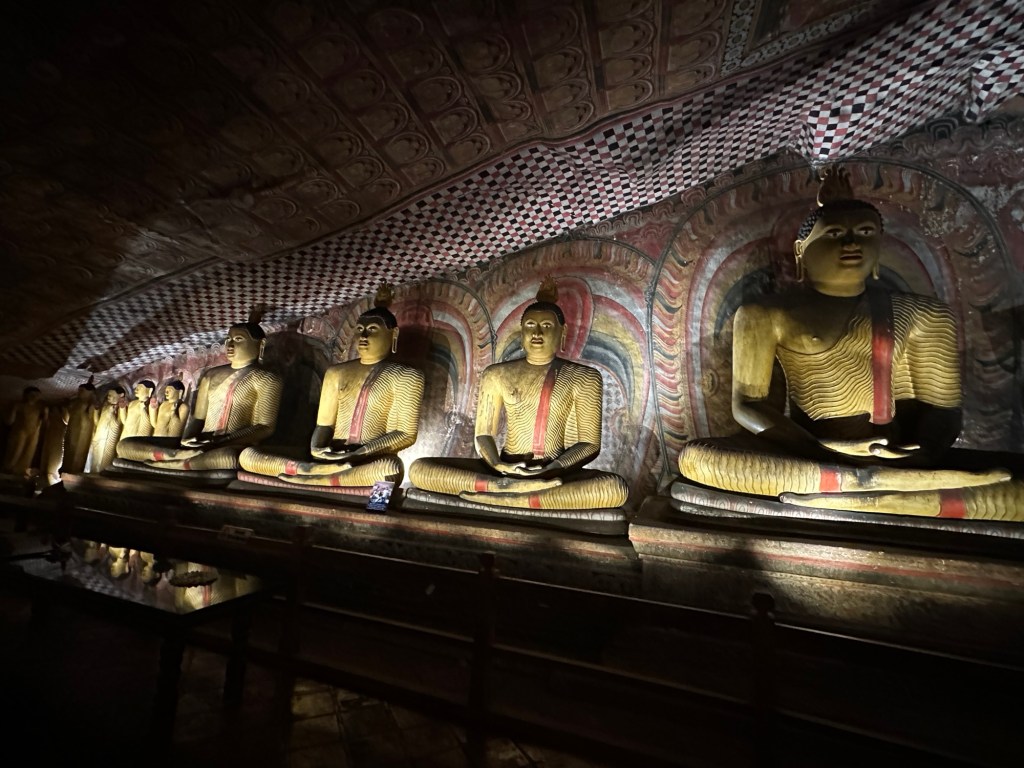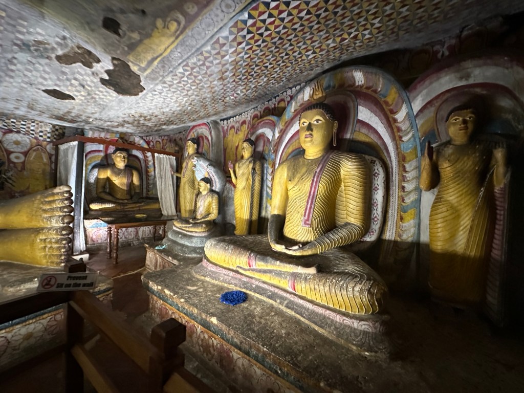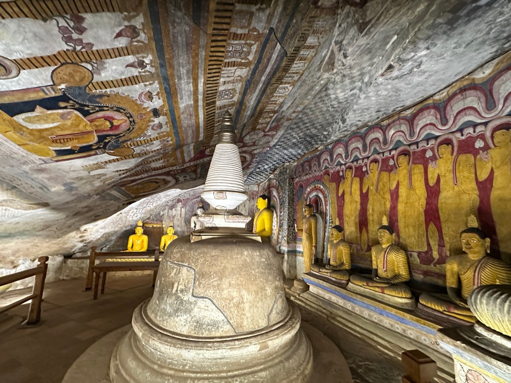 Next, we made our way to the Dambulla Caves, home to the best preserved cave temple complex of Sri Lanka. The cave temples were built in the 1st century and the gigantic granite outcrop towers more than 160 metres above its surrounds. We explored the caves covered by ancient frescoes and their interior, where over a hundred statues of Buddha (157 to be exact) are housed, some carved from the rock itself.
