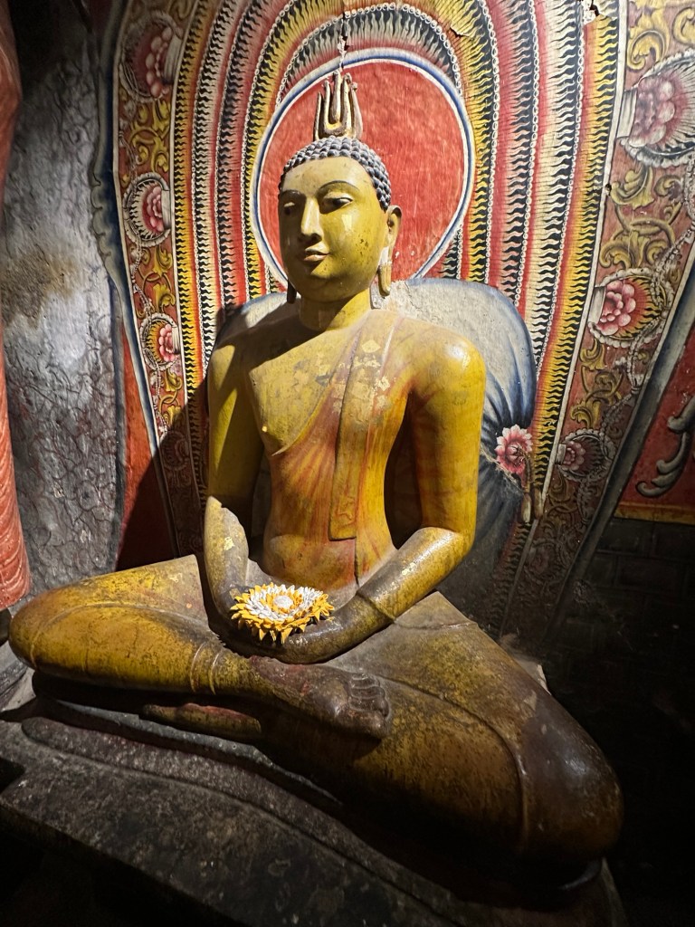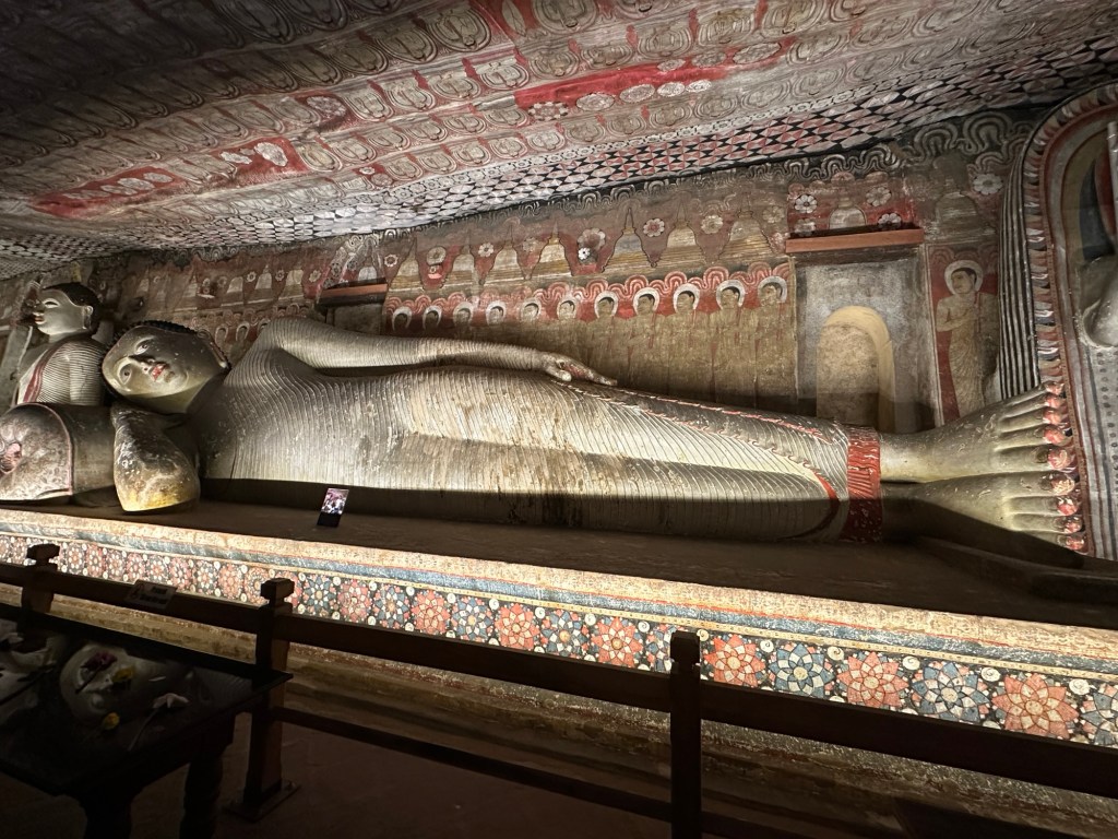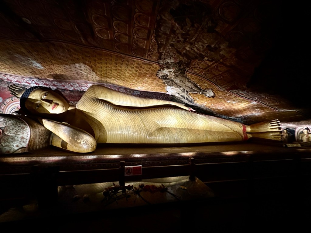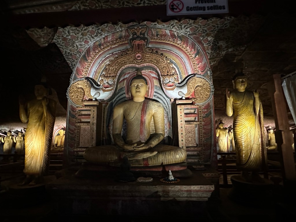 Next, we made our way to the Dambulla Caves, home to the best preserved cave temple complex of Sri Lanka. The cave temples were built in the 1st century and the gigantic granite outcrop towers more than 160 metres above its surrounds. We explored the caves covered by ancient frescoes and their interior, where over a hundred statues of Buddha (157 to be exact) are housed, some carved from the rock itself.