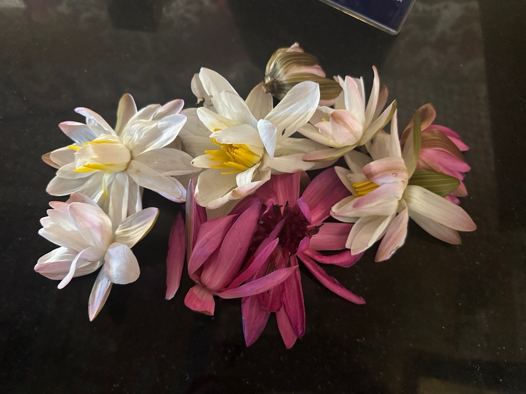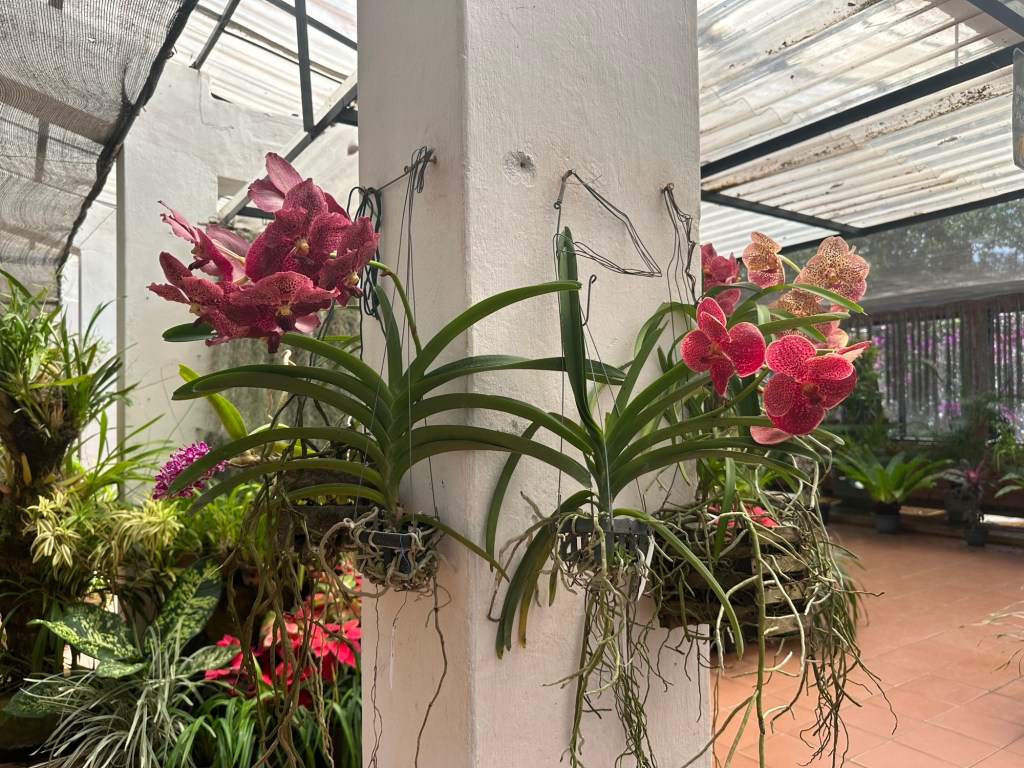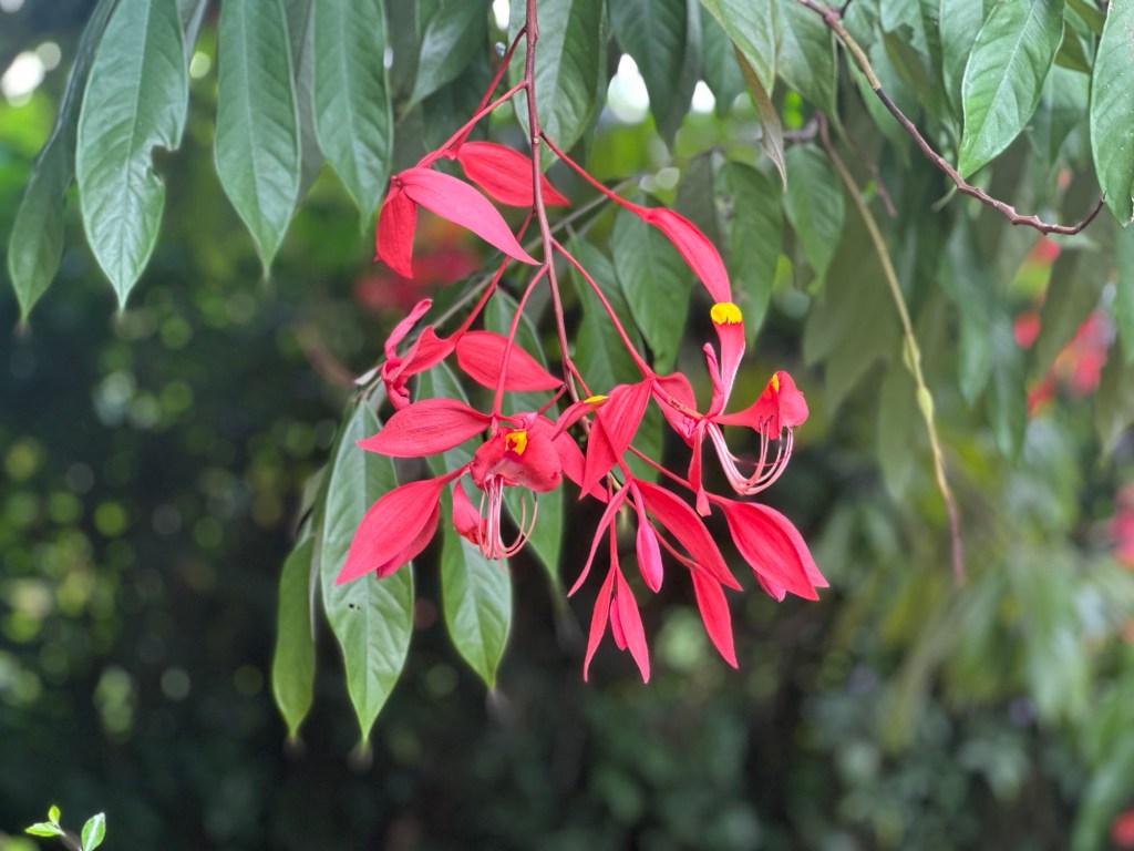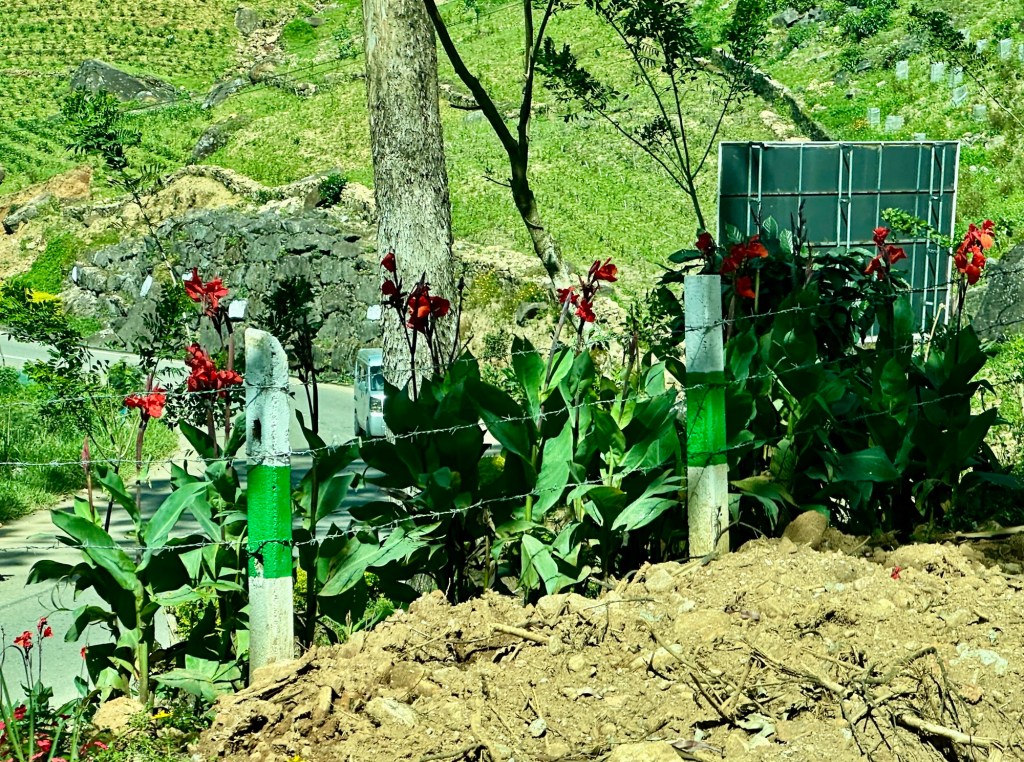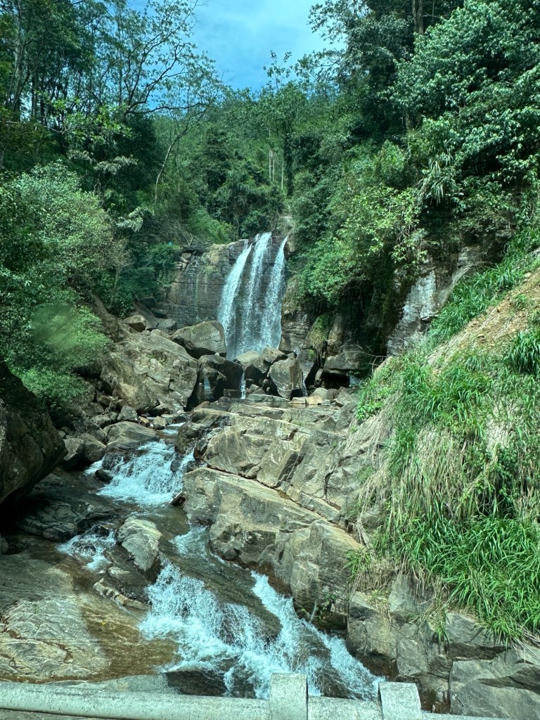 Navigating the hairpin turns, we continued further up into the mountains passing many more tea plantations on terraced hillsides. The scenery was so green and lush. Beautiful flowers along the roadside – cannas, lillies and trumpet flowers in abundance. Our lunch stop was at a restaurant which had the most spectacular view overlooking the plantations.
