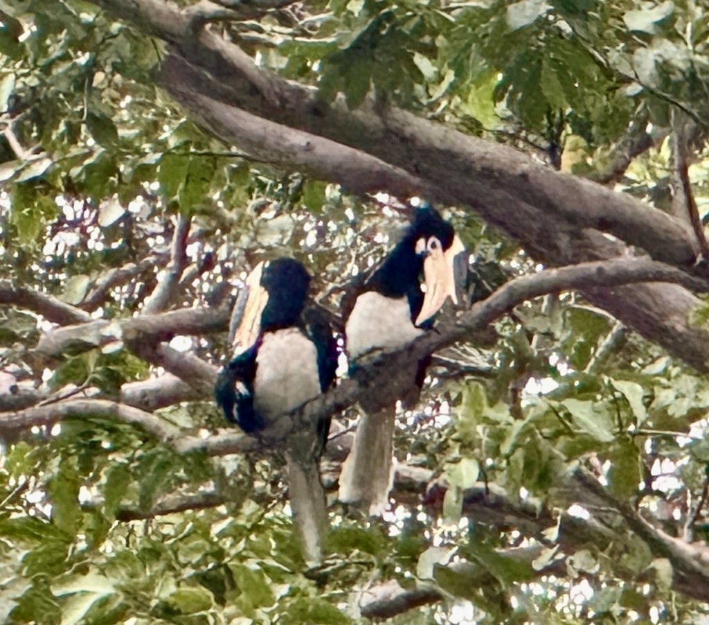 We are staying at Cinnamon Resort for four nights. Featuring views out over Habarana Lake and modelled on a traditional Sri Lankan village with small chalets dotted through the lush landscape. It is a paradise for nature lovers. Frank and I had a walk on the “jogging track” enjoying the serenity. We were treated to approximately 20 Malabar Pied Hornbills settling down to nest in a few of the trees. They looked very similar to toucans . Unfortunately the light was not so good, so my photos don’t do them justice.