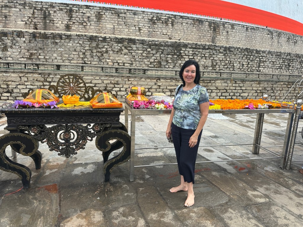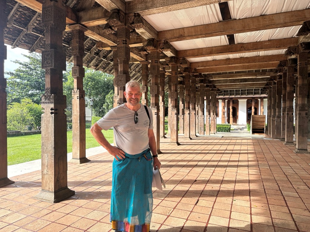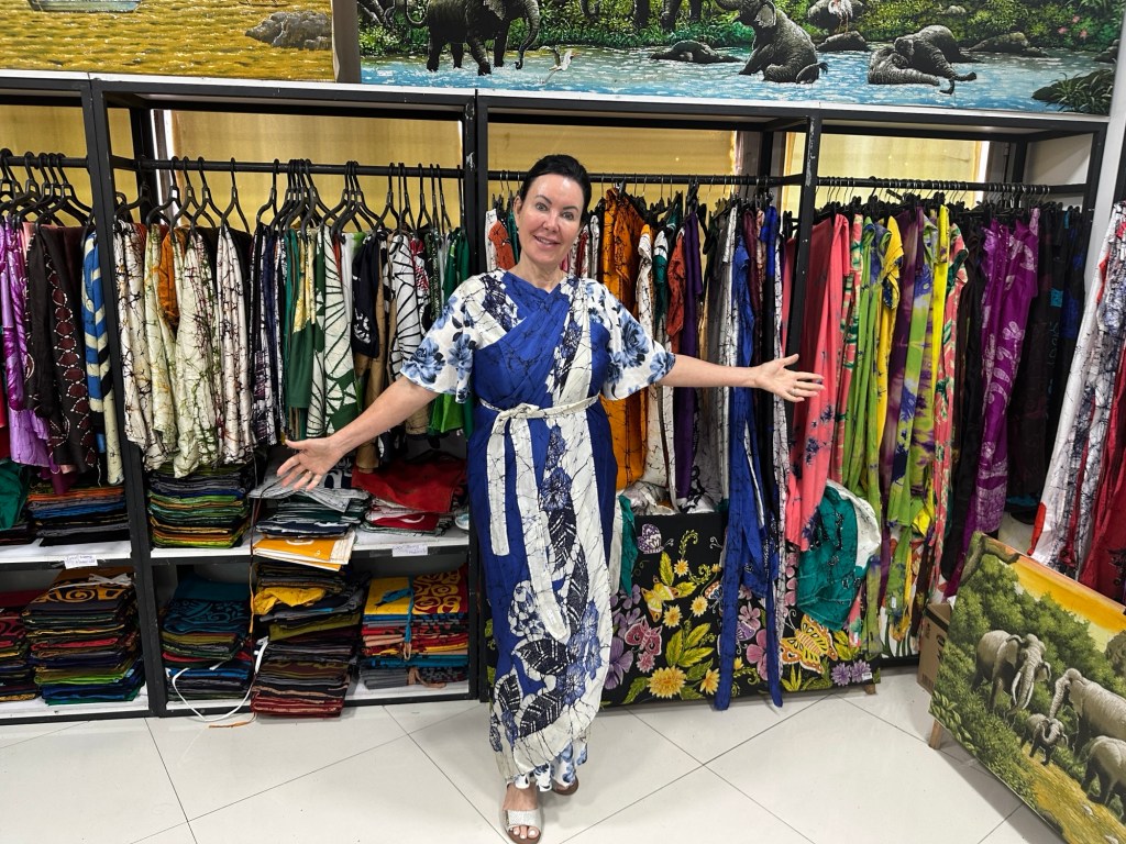 From there we went to a textile store and had all the various aspects of silk and other fabrics explained. I tried on a sari – 6.5 metres of fabric. Just gorgeous. I really have enough silk scarves and resisted the temptation to buy more.