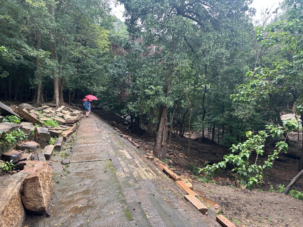 After lunch is the Ritigala Medicinal Forest. To get there we had to travel by four wheel drive for 30 minutes. Set deep in the jungle around a large hill formed by huge sculptural granite monoliths, lies the ancient (250-210 BC) and now abandoned hermitage of Ritigala. Today the visible remains are those of a Buddhist monastic congregation that used to practice meditation in total austerity. Rarely visited by tourists, this mystical place is incredibly beautiful and unspoilt with shady forests filled with streams, pools and granite boulders leading to ruins with various meditation platforms. We had drizzly rain but it actually added to the mystical experience. There were remains of a hospital, library, bath house and the meditation walk. It is believed that the structures were used by the monks for meditation purposes and that the area underneath was flooded with water to keep the place cool.