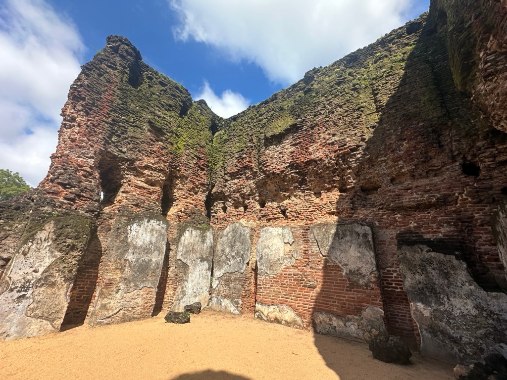 We spent our morning discovering this ancient city that was built alongside a large artificial lake. At the centre of the ancient city is the Royal Palace Group, where King Parakramabahu’s grand palace, also known as Vejayanta Prasada, and other buildings were once protected by heavy fortifications. The palace is believed to have originally stood seven storeys high with a thousand rooms, although all that remains today is a three-storey building made of brick.