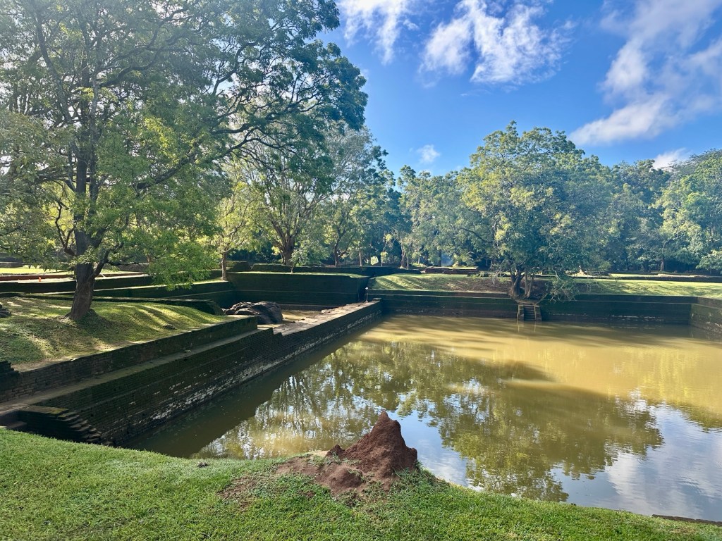 After walking through the beautiful grounds of the water garden, we ascended 1200 perilously perched stairs to discover a breathtaking view over the Sri Lankan jungle below and intriguing remnants of a once thriving kingdom. There were two pools at the top. All water was recycled. Absolutely fascinating. It’s quite unbelievable how this 5th Century rock fortress was built on the top of the Lion Rock which is 363 metres high.