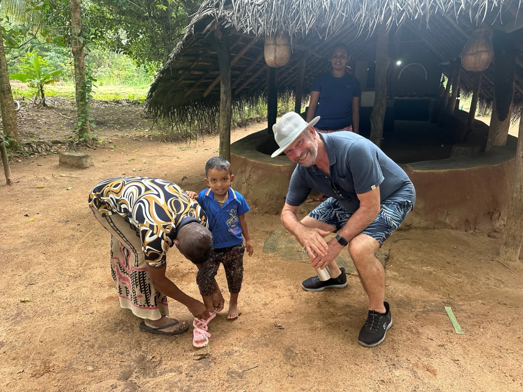 Ten minutes away was a very quaint village. Here we visited the local school of only twelve students, who sang for us, and also wrote our names in Sinhalese on the whiteboard. Bunnick has supported this school for many years.