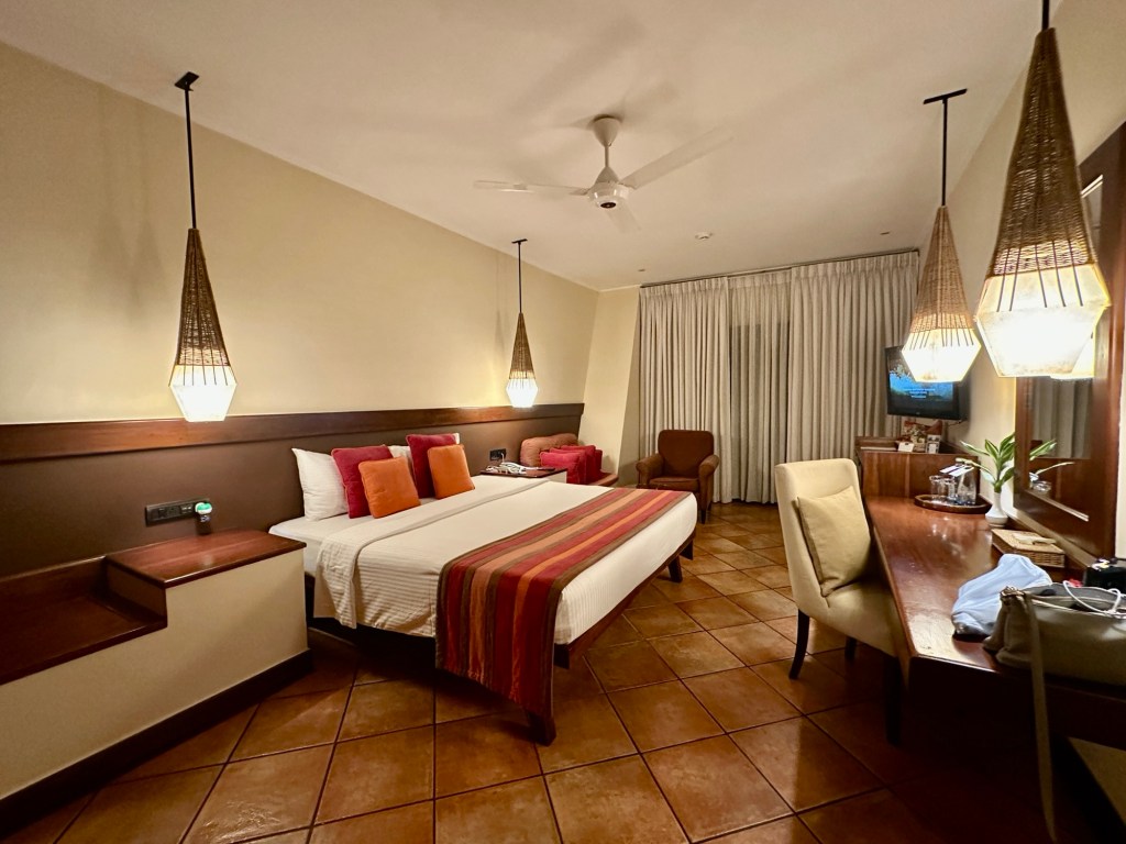 Finally free, we were welcomed outside by our friendly Bunnik representative, a reassuring sight after the chaos of arrivals. A thirty minute drive, weaving through the nighttime streets, and we arrived at our hotel in Negombo — the Regenta Aire Resort. It was close to midnight by the time we climbed into bed, utterly exhausted but quietly excited for the adventures that awaited us in Sri Lanka.