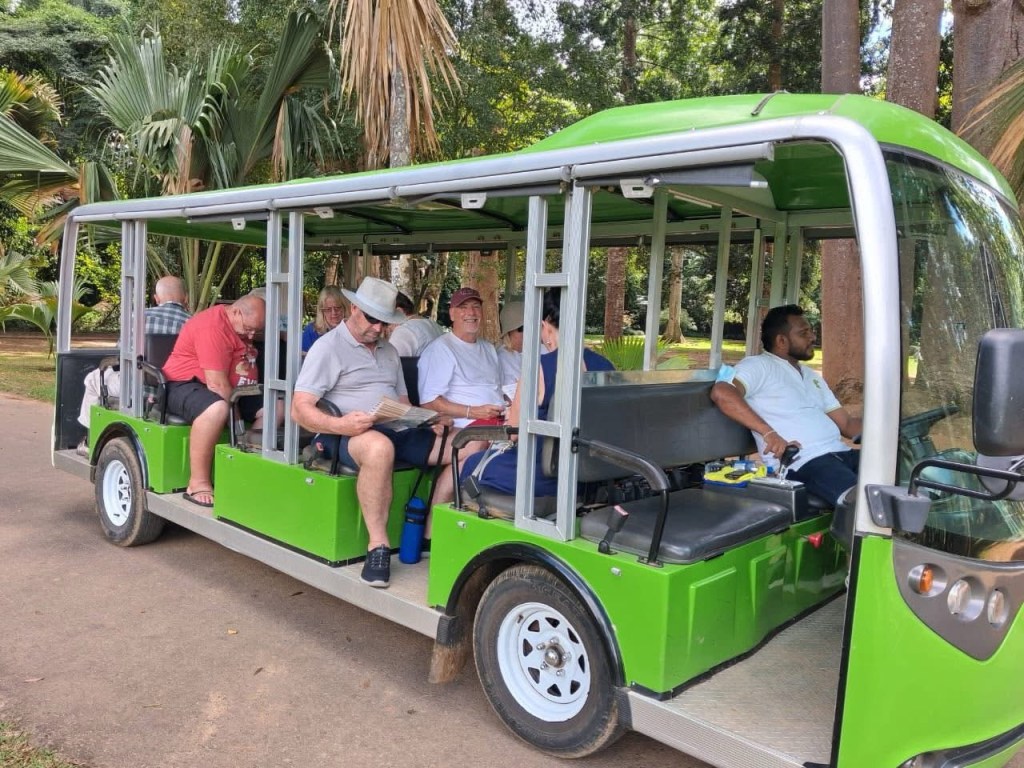 Because there are 60 hectares of gardens, Priya organised a cart for us to get around in. Luckily he did as it was very hot outside today. The gardens are truly lovely and great to have a sample of every tree in Sri Lanka. We enjoyed lunch in the cafe looking over the grounds.