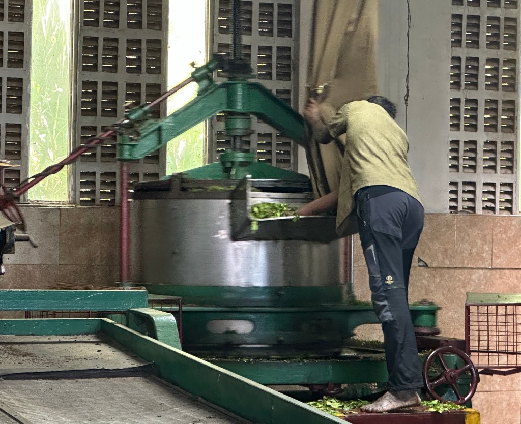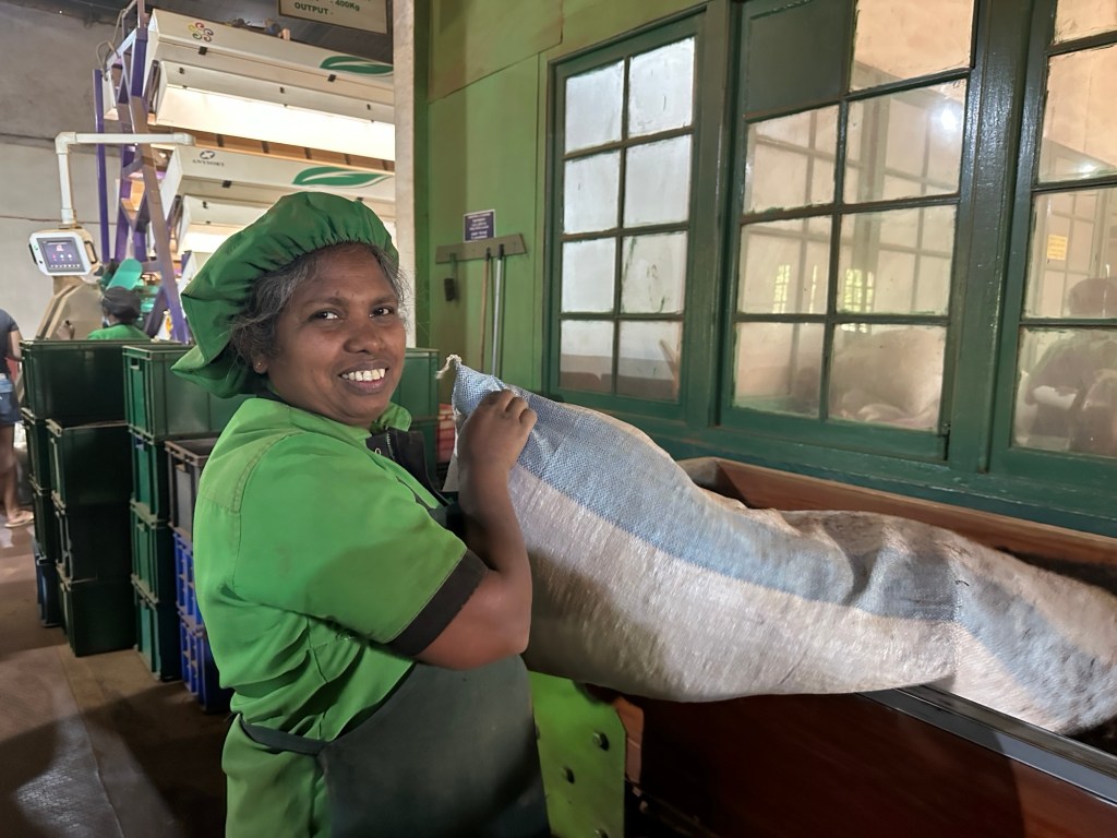 We visited Glenlock tea plantation and factory where we discovered how Sri Lankan tea is produced, from picking the leaves to selling the tea. Sri Lankan tea processing, primarily for black tea, involves meticulous hand-plucking of “two leaves and a bud,” followed by Withering (reducing the moisture), Rolling (rupturing cells for flavour), Fermentation (oxidation for colour/strength), Drying (fixing flavour), and finally Grading/ Sorting by size and quality; all crucial steps to create Ceylon Tea’s distinctive character. 80% of the tea is then exported overseas and the remainder is sold locally in Sri Lanka. Of course we couldn’t leave without sampling some tea!