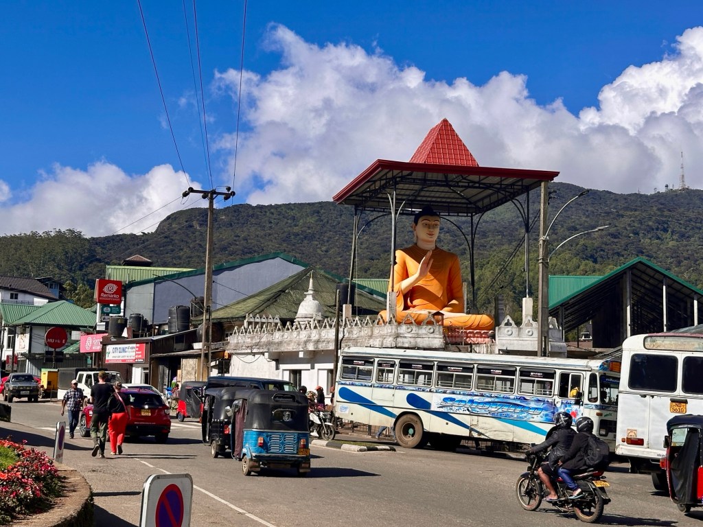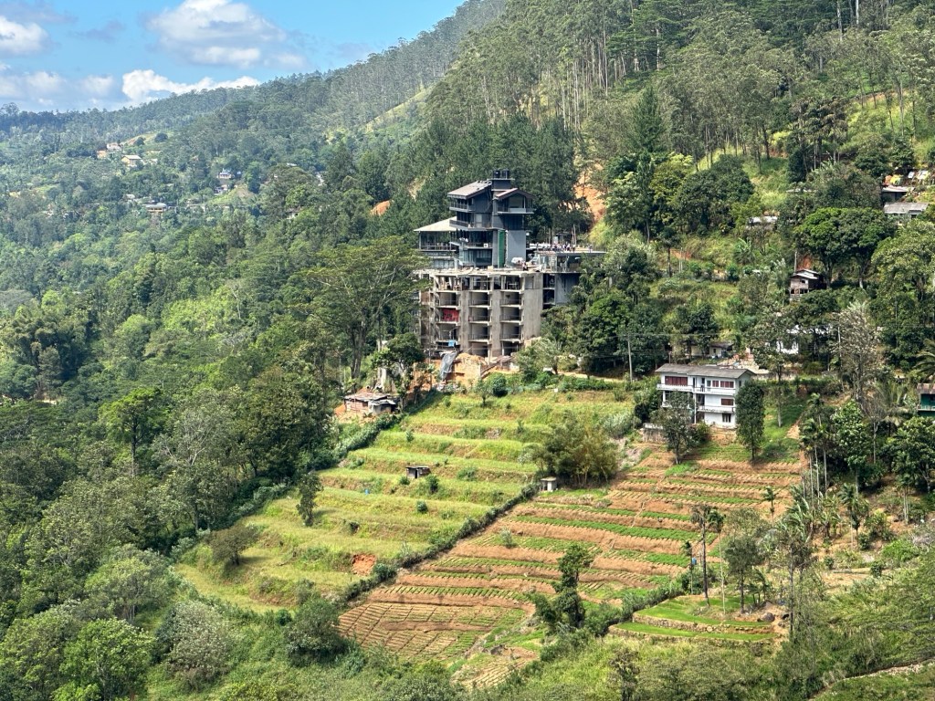 We then made it through Kandy’s peak hour traffic and had a lovely scenic drive to the country’s main hill resort, Nuwara Eliya. There was much residual devastation from the recent floods – lots of rubbish in the trees along the river’s edge. People were illegally collecting sand from the river bed.