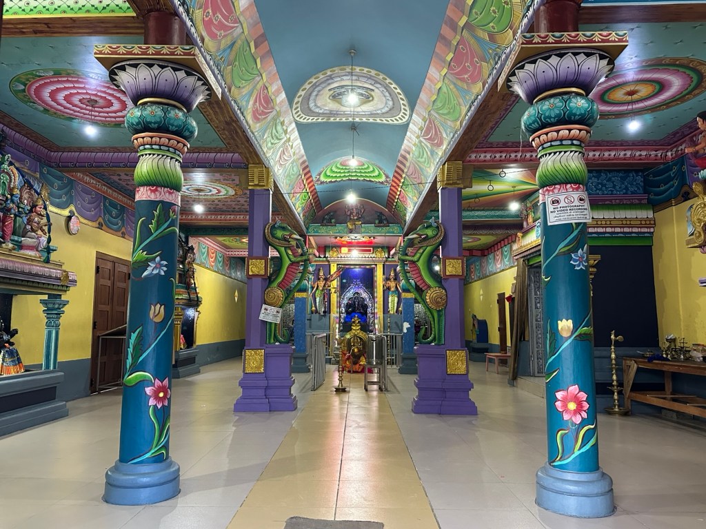 Not far away was the Galway Heights Hotel, where we are staying for two nights. Frank and I walked to the local Tamil village where all the tea workers live. There was a Hindu temple there which was very colourfully decorated inside. Another buffet, and a couple of musicians playing some lovely background music. They also played the song we had been practicing so we were able to confidently join in.