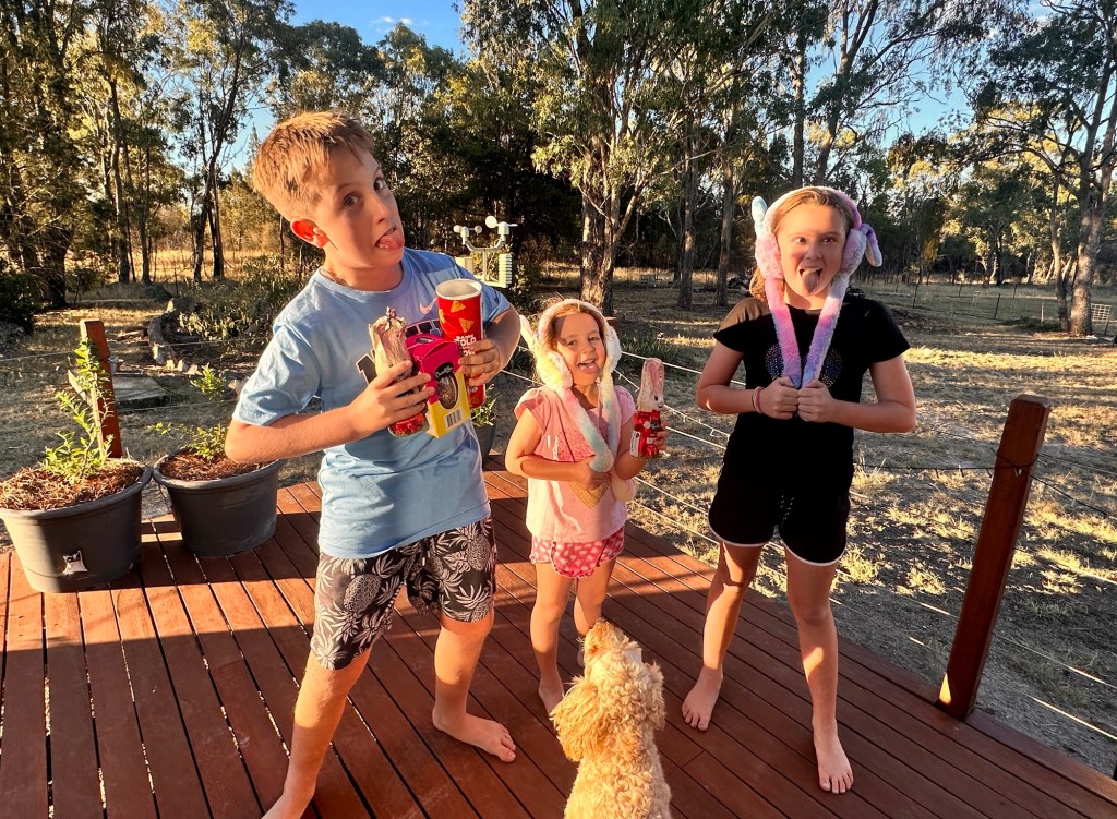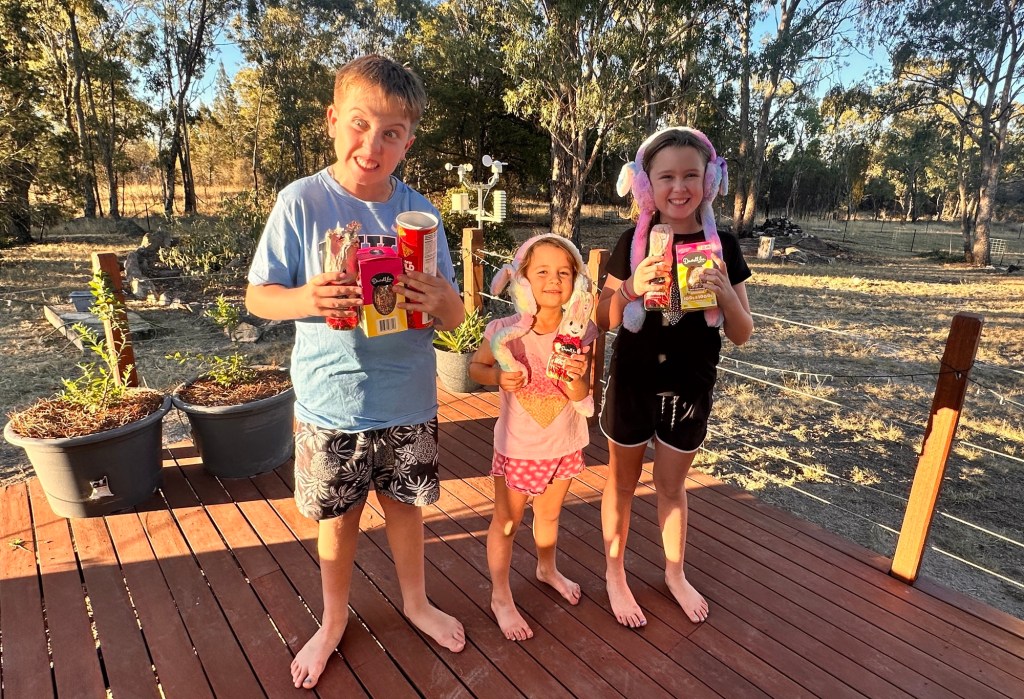 The kids—Jackson, Poppie-Rose and Isla—were in their element, running wild in the backyard with the dogs and fully embracing the Easter vibes. Plenty of laughter, fresh air, and that kind of wholesome chaos that only kids can create.