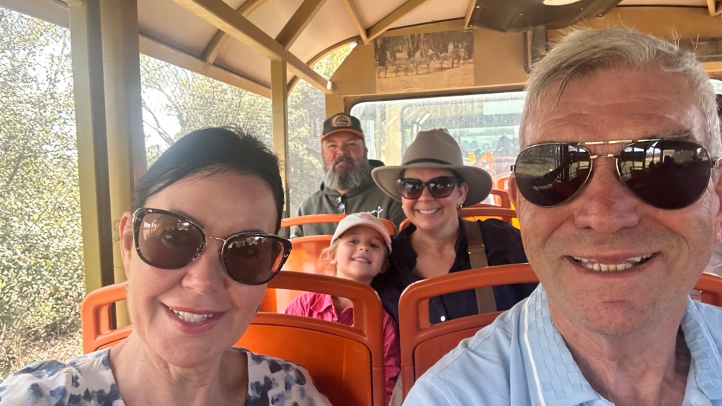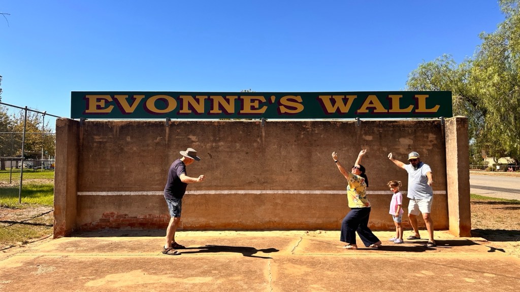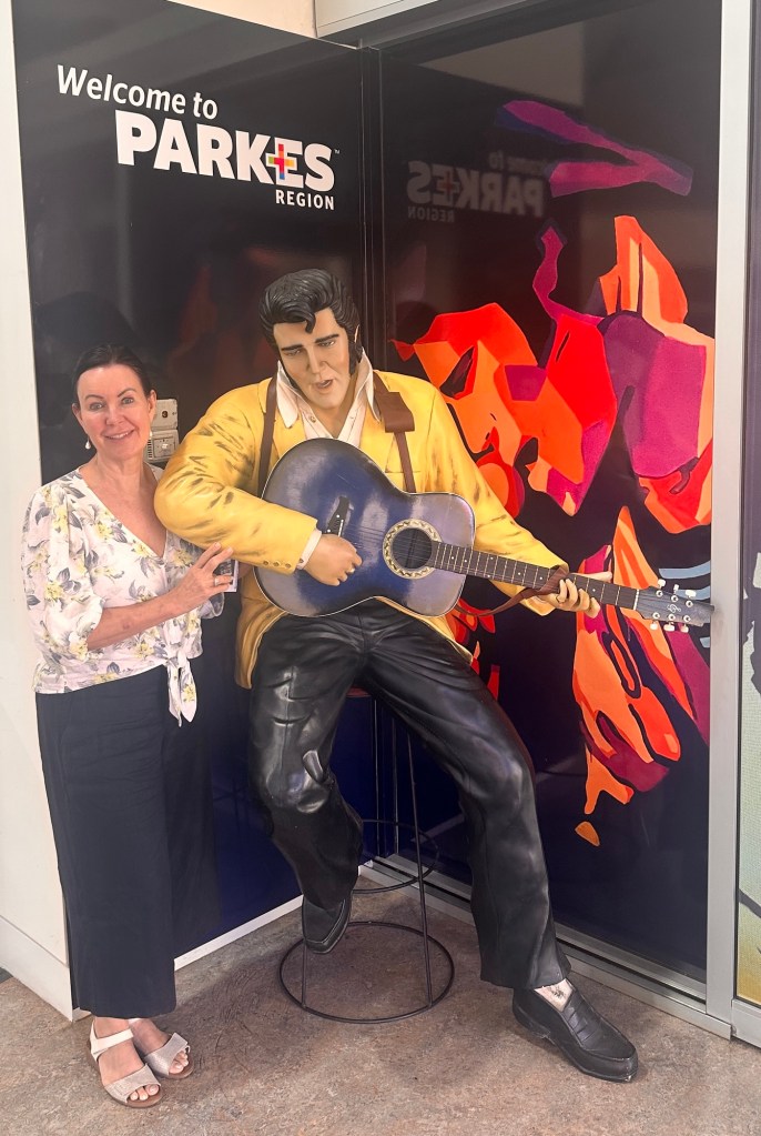 Travelling the Newell Highway we drove through Coonabarabran and then stopped at Gilgandra for lunch, plus a park stop for Isla. Through Dubbo, then a stop at Parkes – Chantelle and Simon stopped at the Observatory (we had only seen it two years ago), and we went to the Henry Parkes Museum. It closed at 4pm which meant we didn’t have a lot of time there, but we did get to enjoy the Elvis Presley exhibition including the impressive replica Gracelands gates. Parkes has been hosting the Elvis Festival for 32 years – we went in 2024, it was so much fun!