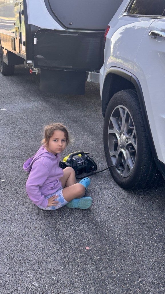 Plan B led us to another caravan park in town… and straight into a bit of a driving challenge. The site demanded a careful reverse on a curve, on a slope, on gravel—basically a three-part test of patience and skill. But success! Sylvie was safely tucked in once more.