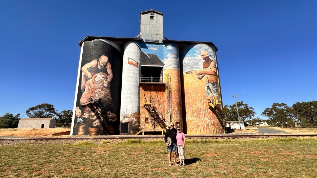 From Forbes we drove through to West Wyalong, then onto Weethalle to see the first of our silo art on this trip. The town’s silos serve as a striking canvas for a breathtaking large-scale mural. Completed in June 2017 by renowned Melbourne street artist Heesco, the mural pays tribute to the rich agricultural heritage of Weethalle and the local region.
