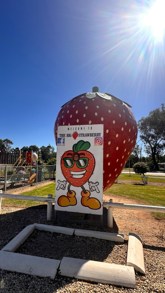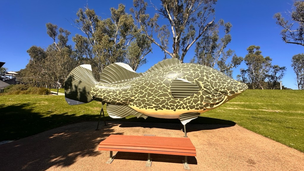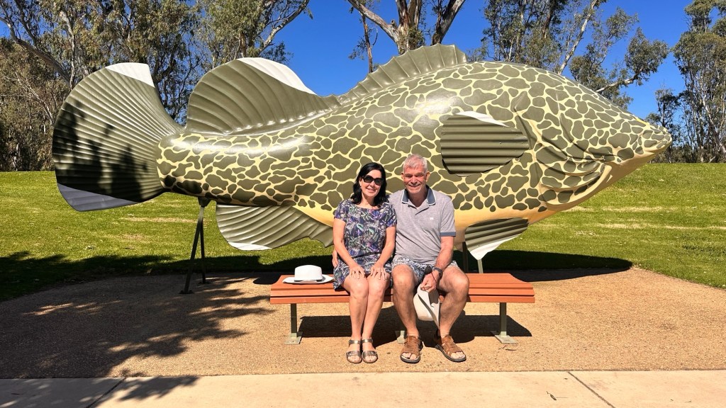 Time to leave Griffith. Another long day ahead. First stop at Tocumwal, our last NSW stop. Had to pose for a photo in front of the big Murray Cod, before crossing the mighty Murray and entering Victorian territory.