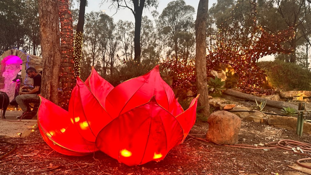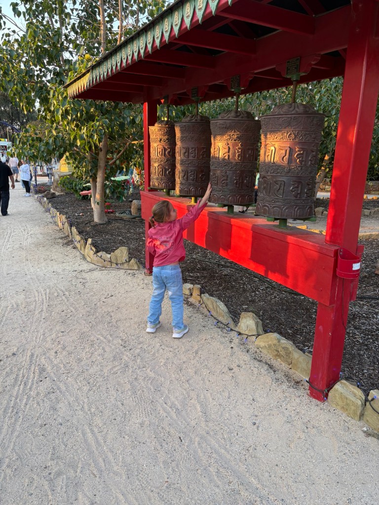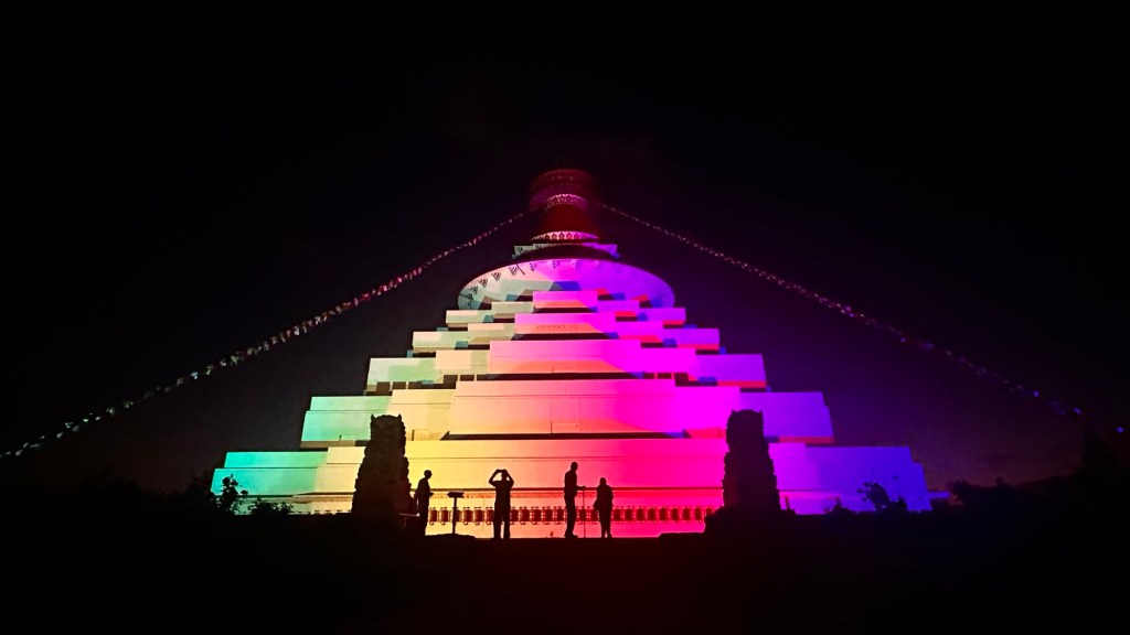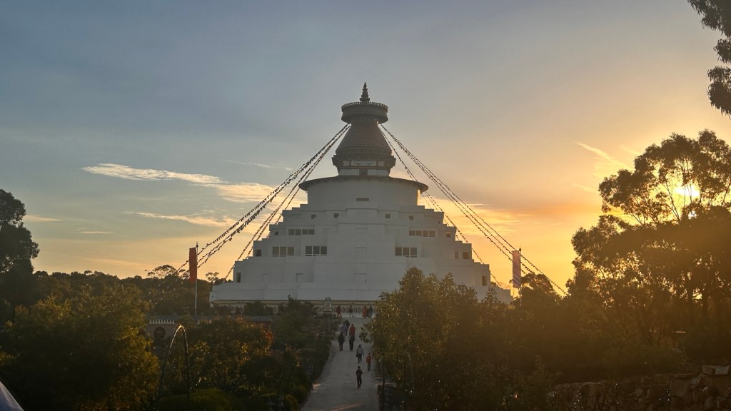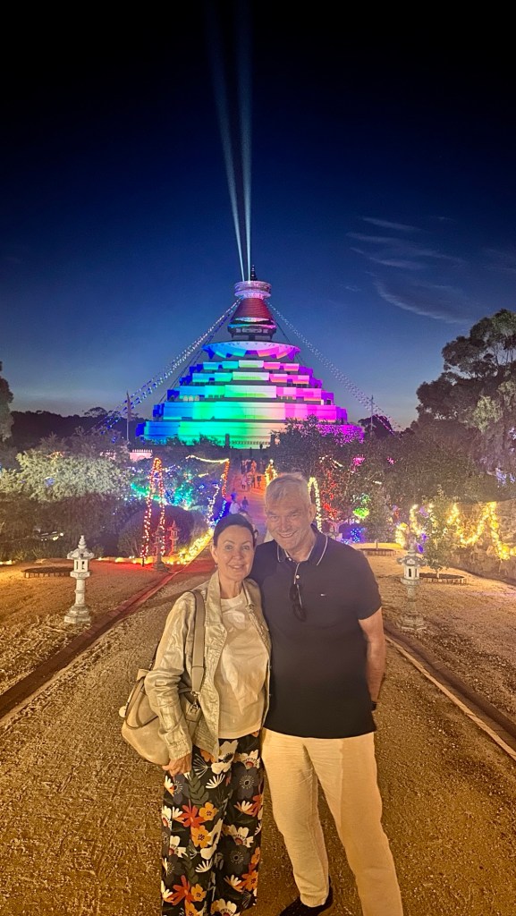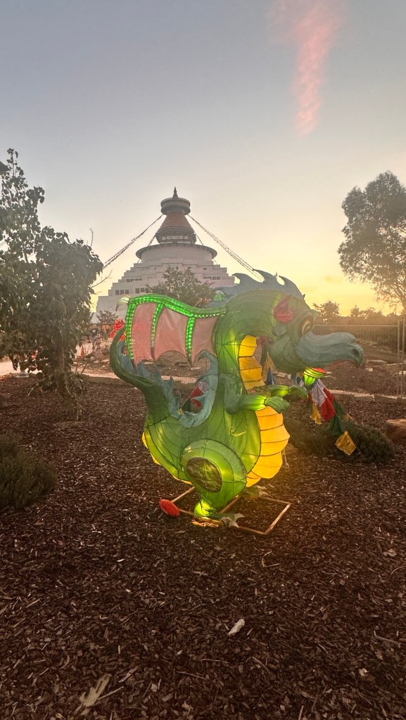 Once set up, we drove 40 minutes to Bendigo. Their Easter Festival included the Enlighten Light Show at the Stupa. The Great Stupa of Universal Compassion is a Buddhist monument just north of Bendigo. The stupa was modelled on the Great Stupa of Gyantse which is 600 years old.