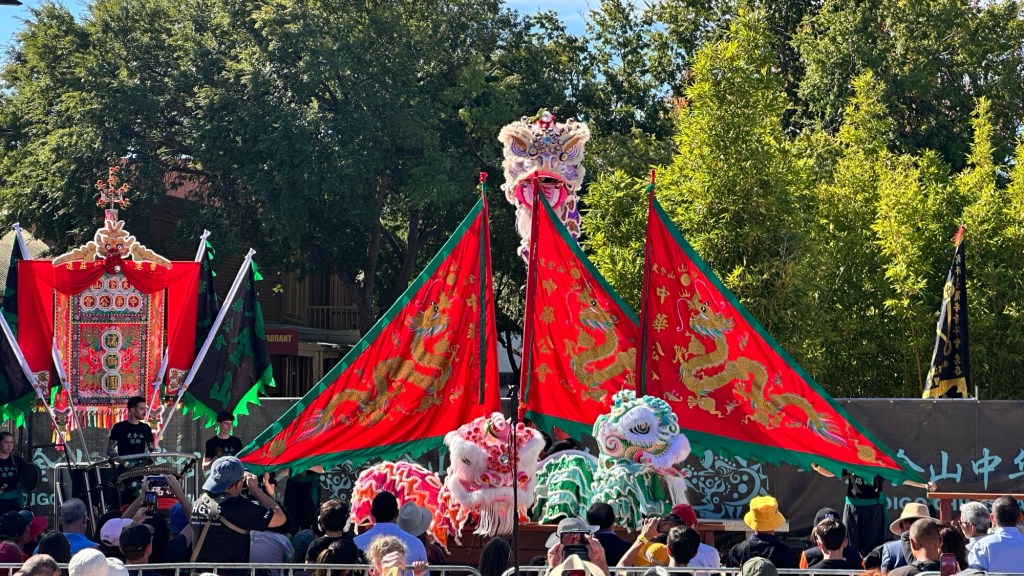 Back in town where the festival was in full swing, we watched the very vibrant traditional celebration of lion and dragon dance. Concluding with the lighting of 100,000 firecrackers, used to wake Dai Gum Loong from his slumber in preparation for his appearance in the parade the next day – that woke us all up!