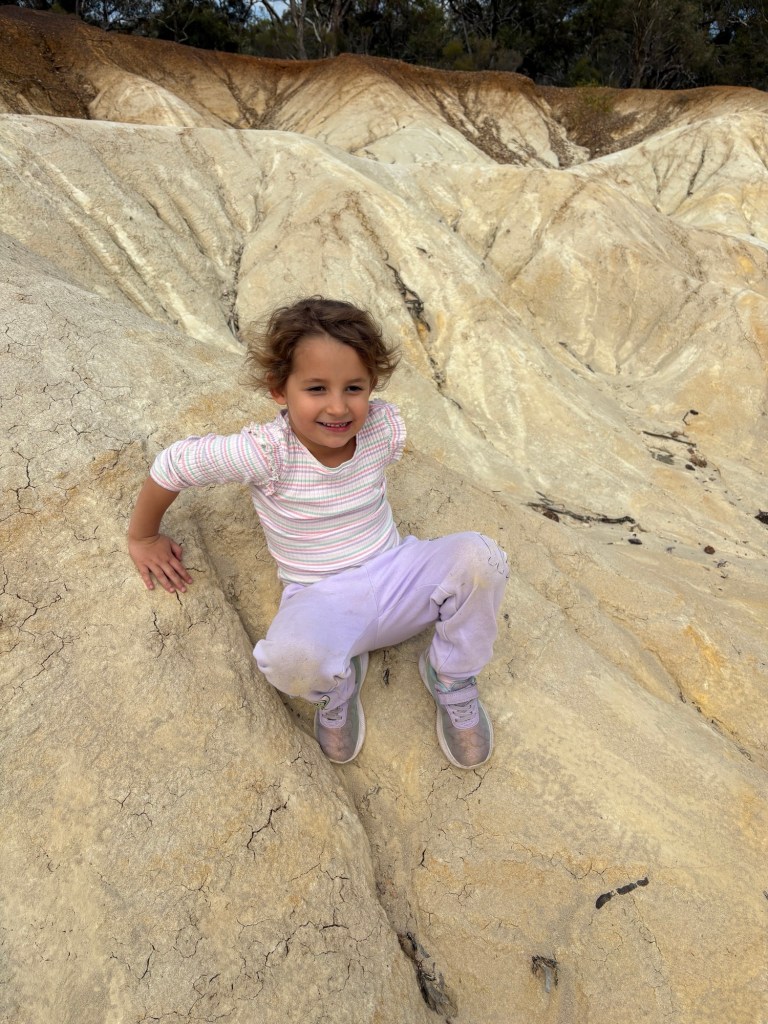 We declared it an official “rest the cars” day and set off on foot instead. Forty minutes later, we stumbled upon Heathcote’s pink cliffs — a hidden little gem. Think winding mini gorges, blush-toned clay, and ironstone pebbles crunching underfoot. It felt like we’d wandered onto another planet, and you could just tell it would glow at sunset.