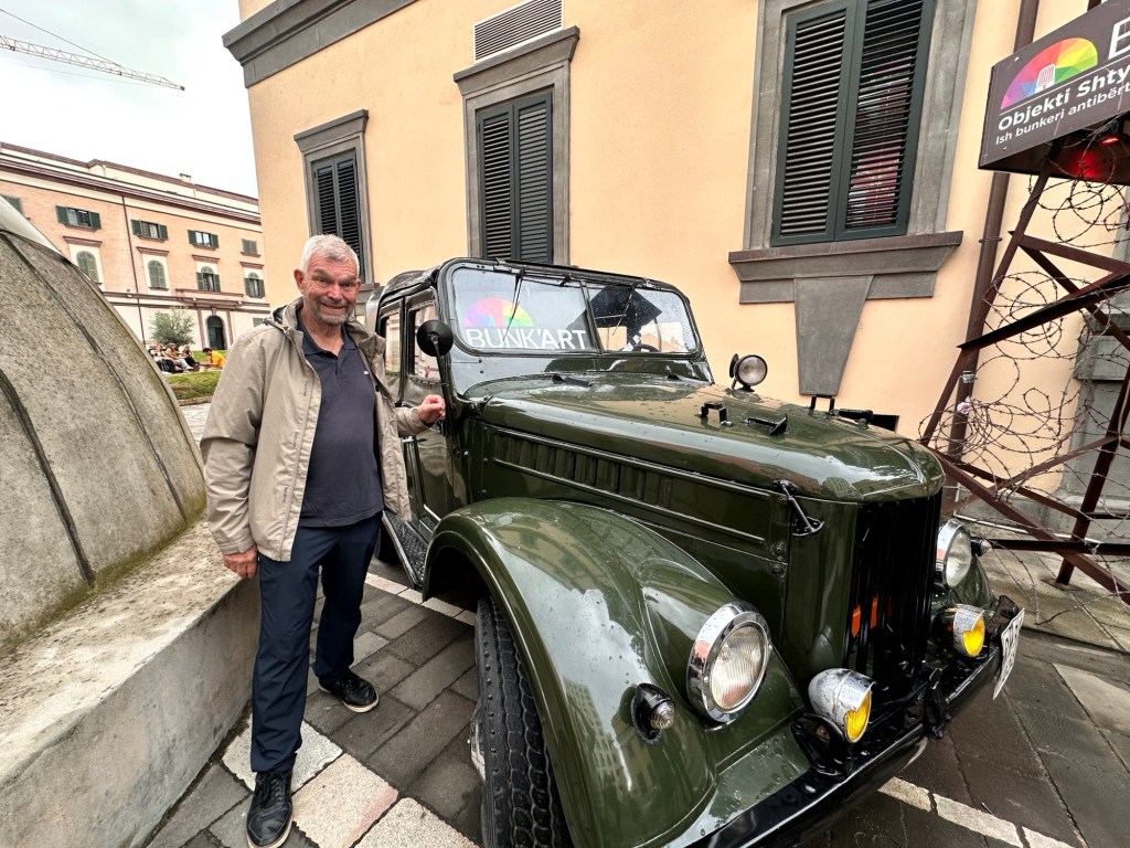 We also did a tour of the Cold War Tunnel – once we found it! The largest of the 99 bunkers that burrow below Gjirokastër, this tunnel was constructed during the government-led nuclear paranoia of the 1970s. According to plans at the time, only 300 Communist Party members and their families would have access to the 59 concrete rooms spread across the 800 metres long tunnel in the event of nuclear war. The project was completed in total secrecy, meaning that most locals only found out about the tunnel’s existence once the regime changed in 1991. Today, there are only a few original furnishings left inside the bunker spaces, including telephones and a rusting filtration system, among the low vaulted ceilings. Inside, displays shed light on plans to continue party rule from the bunkers: the space includes a decontamination room (in the event of nuclear war), a school, a law court and an interrogation cell. Only 3 toilets – one for the president and the mayor, and two for everyone else. No showers were evident! Gjirokaster was the birthplace of former leader Enver Hoxha.