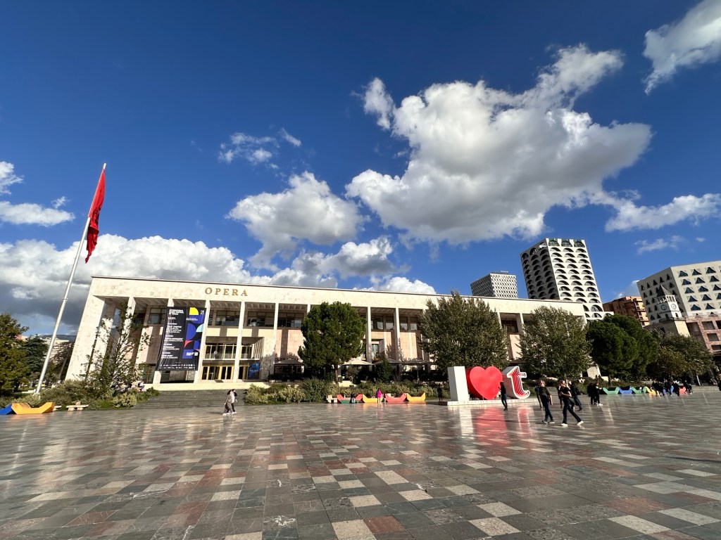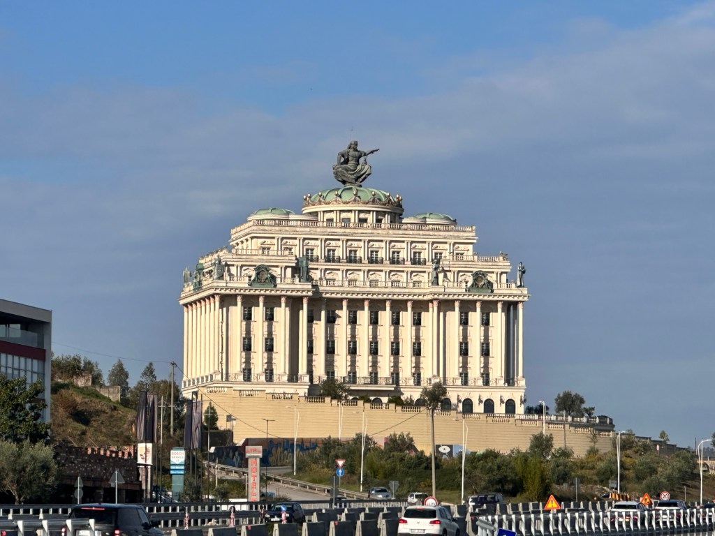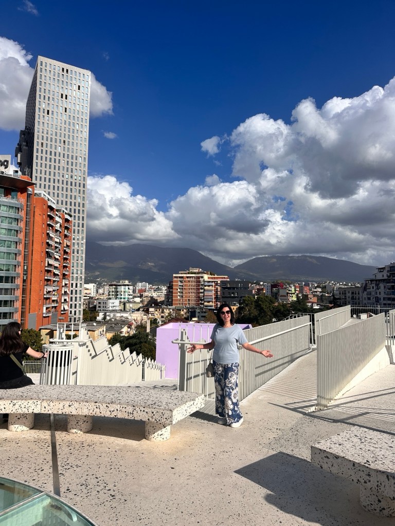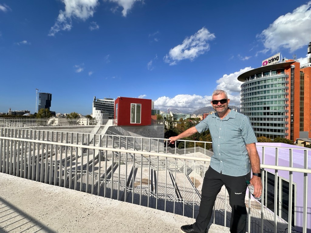We had the afternoon to explore a little more of Tirana. Built in 1988, the Pyramid of Tirana was constructed as a museum dedicated to the life of dictator Enver Hoxha following his death in 1985. In 2023, the Pyramid underwent a reinvention, when it was transformed into an architectural symbol of a modern Albania. New exhibition spaces, cafés and viewing platforms have been added to the structure, all of which can be accessed via a series of white metal staircases. We weren’t overly impressed, but there was a great view of the Tirana skyline once we climbed to the top of the structure.