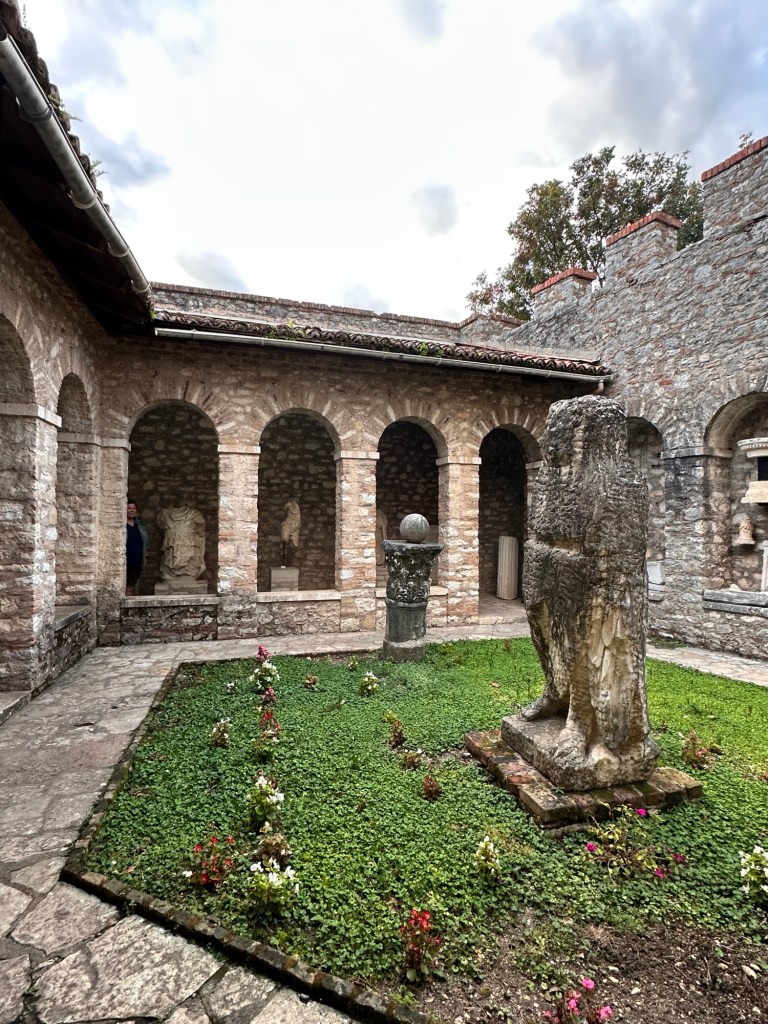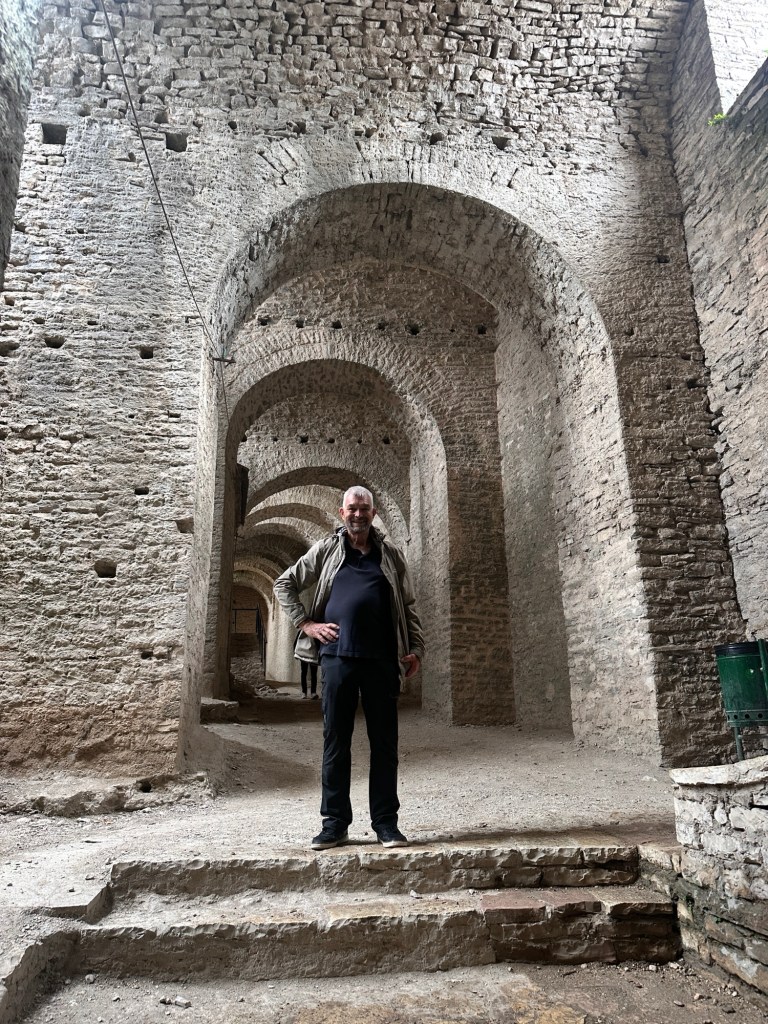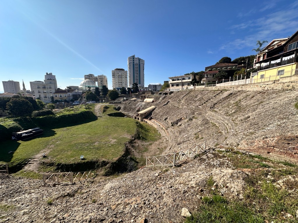 After a forty-minute drive, we arrived in Durrës, Albania’s oldest city, with nearly 3,000 years of history. The highlight was the Roman amphitheater, discovered only in 1966, built in the 2nd century AD under Emperor Trajan. Once, it could seat up to 20,000 spectators who gathered to watch gladiator battles and other ancient spectacles.