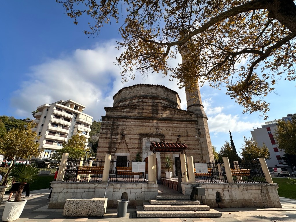 A ninety minute drive then had us at Vlorë. We had a short walk around the Old Town and Independence Square. Also there was the Muradie Mosque (or Lead Mosque) which is one of the most important structures in Vlore. Built in 1537 by Ottaman Turkish Architect Mimar Sinan and is distinctive for its exceptional brick work.