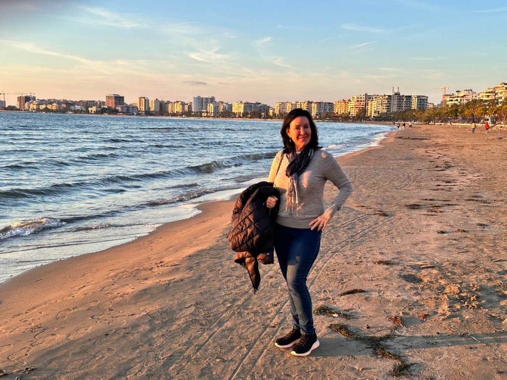 We had an hour to explore the town and the beachfront. The beach itself was less than inviting — a bit grimy and not exactly fragrant — but the Adriatic Sea beyond shimmered brilliantly in the sun, almost redeeming the scene.