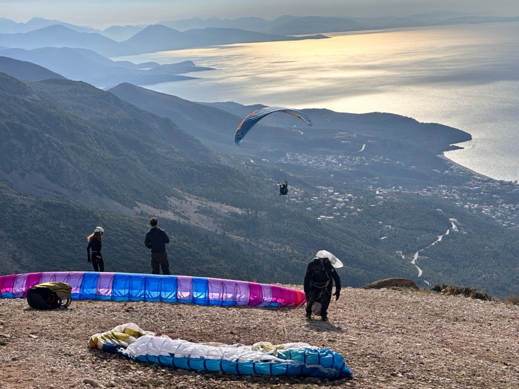 Today we drove along the spectacular Albanian Riviera to Gjirokaster, with a number of stops and highlights along the way. Our first stop was to photograph the amazing coastline. At this vantage point we were mesmerised observing three paragliders jump off into the headwinds and soar over the Adriatic Sea.