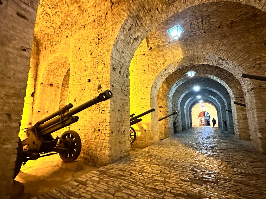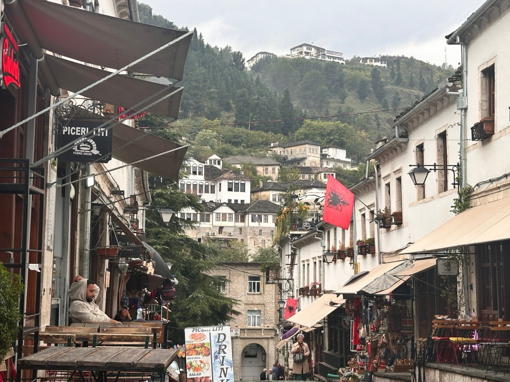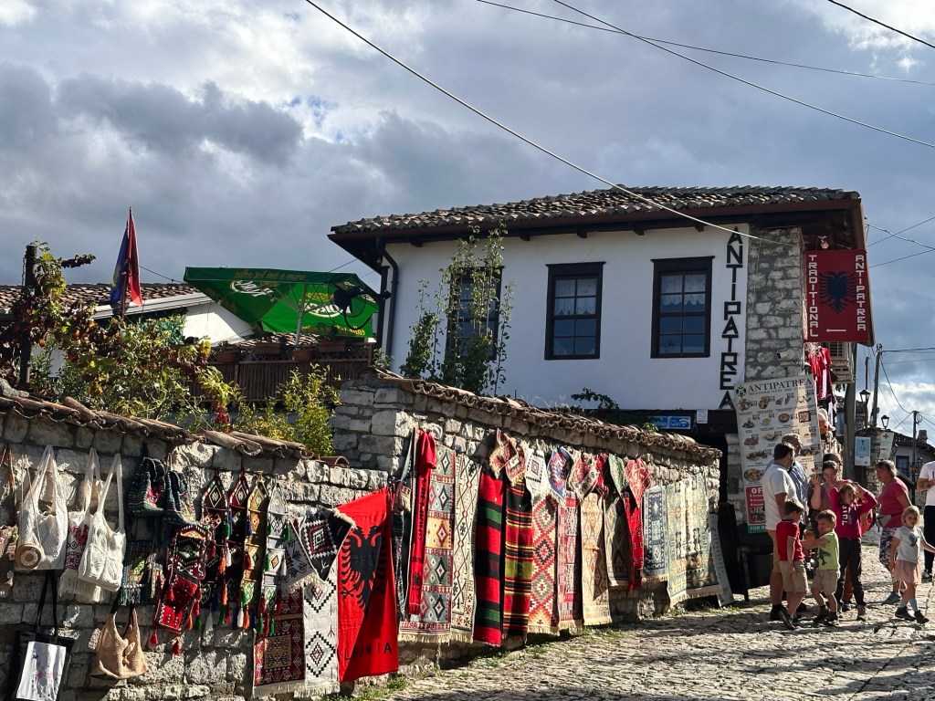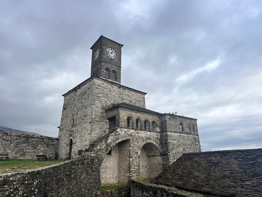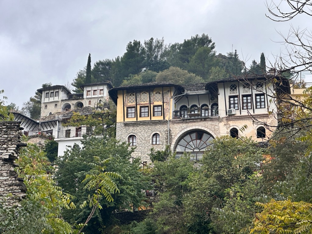 The day started with a walking tour of Gjirokaster for 1 1/2 hrs. Gjirokastër’s name draws from the Greek word kástron (castle), a nod to the 12th-century fortifications that still dominate the city. Steep cobbled streets wind through its Old Town, a UNESCO World Heritage Site containing 15th-century neighbourhoods and 19th-century Ottoman mansions. Originally built during Ottoman rule, the city’s first bazaar was destroyed during a fire in the 19th century; it was rebuilt again soon after, and now anchors the Old Town. Shops, cafes, wine bars and restaurants line the streets.