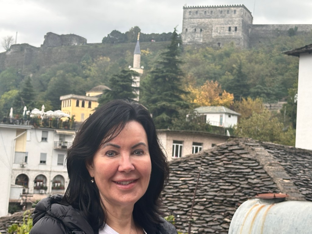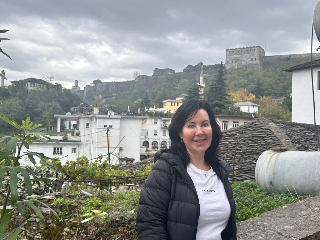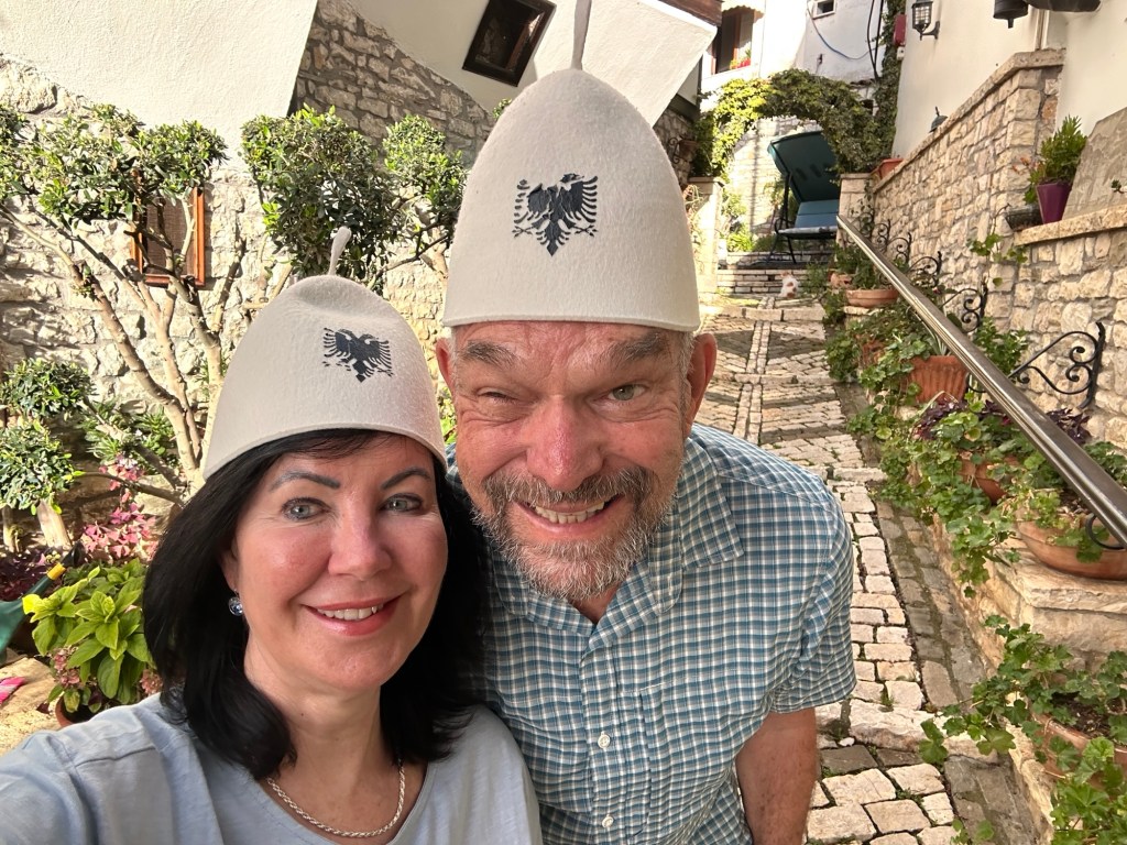 It was dark by the time we arrived in Gjiirakaster. After checking into Kastro Hotel – a quaint family run hotel, we went straight out to dinner in the old city, only a couple of minutes walk away. This traditional Albanian restaurant offered all the local delicacies – I had moussaka, Frank had a lamb casserole with a yoghurt topping. Delicious! Then I simply had to try the local dessert – Oshaf. Gjirokaster’s panna-cotta-style dessert is made with fresh, crushed figs mixed with sheep’s milk and cinnamon. To die for! Plus some local raki! Raki is a throat-tingling spirit brewed all over the Balkans from plums, figs and pears to a strength of at least 40 per cent alcohol.