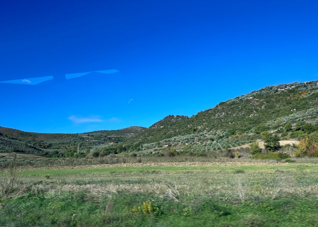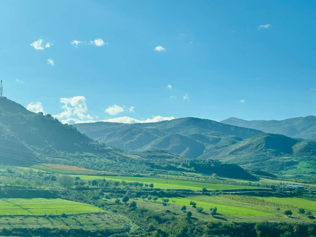 We left Tirana with a slight hiccup — the bus wasn’t big enough. Another was sent, only marginally larger, but at least all the luggage managed to fit this time. Inside though, it was still a rather tight squeeze.
