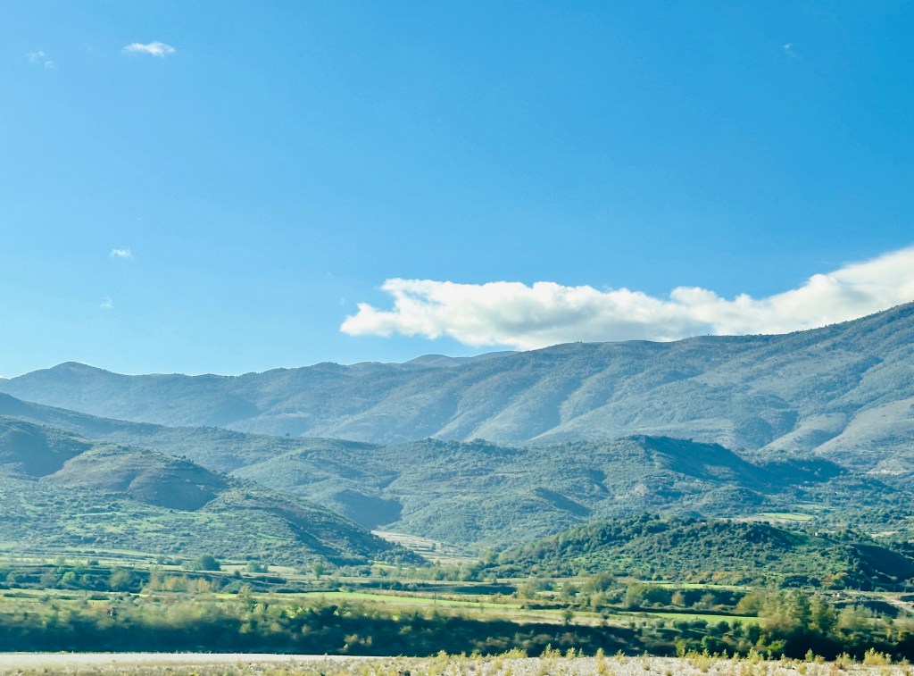 After a lovely breakfast on the rooftop terrace looking out at life going on in the Ottoman houses surrounding us, we set off in the van. Another scenic drive through agricultural lands surrounded by mountains took us back into Tirana. We had to walk our bags from Skanderbeg Square to the Metro Hotel where we had stayed the first night.