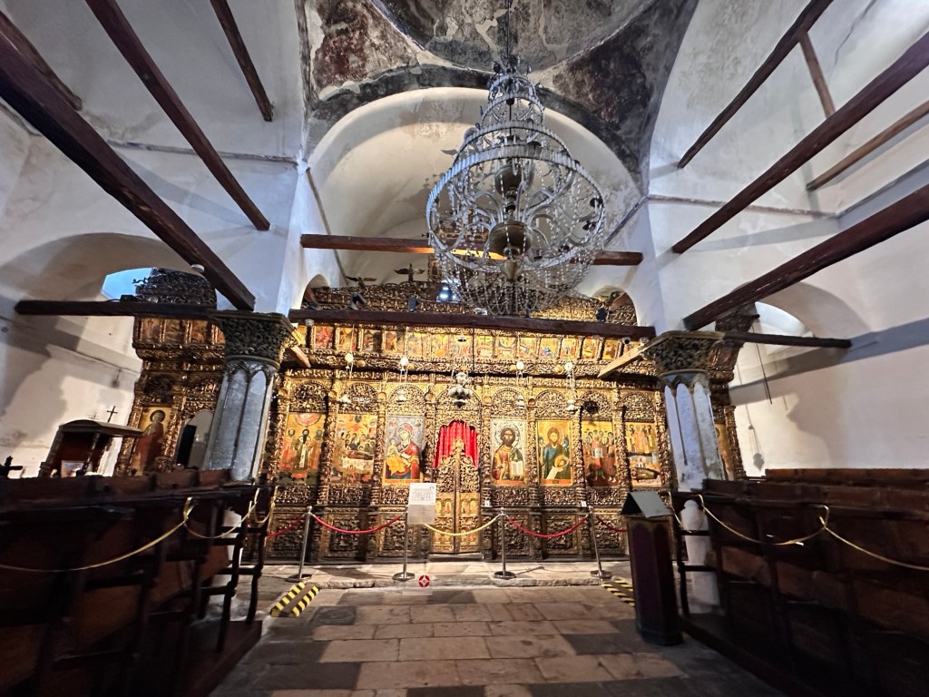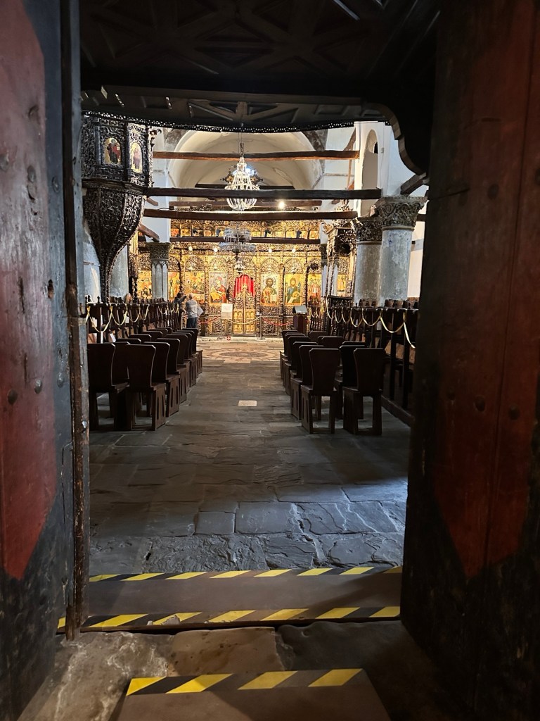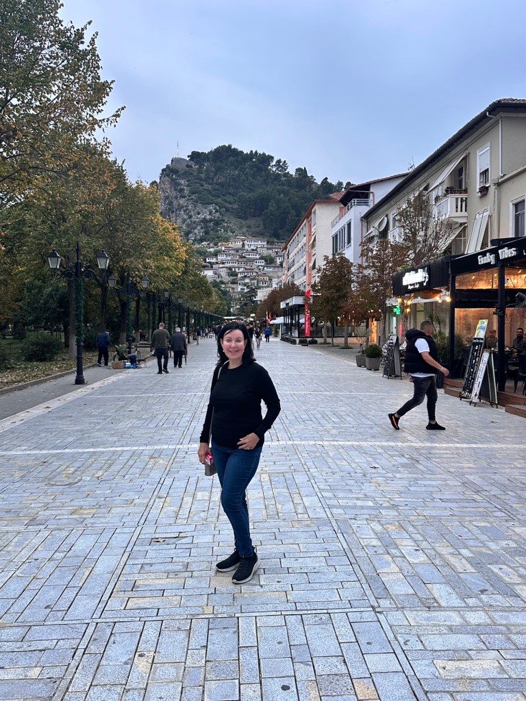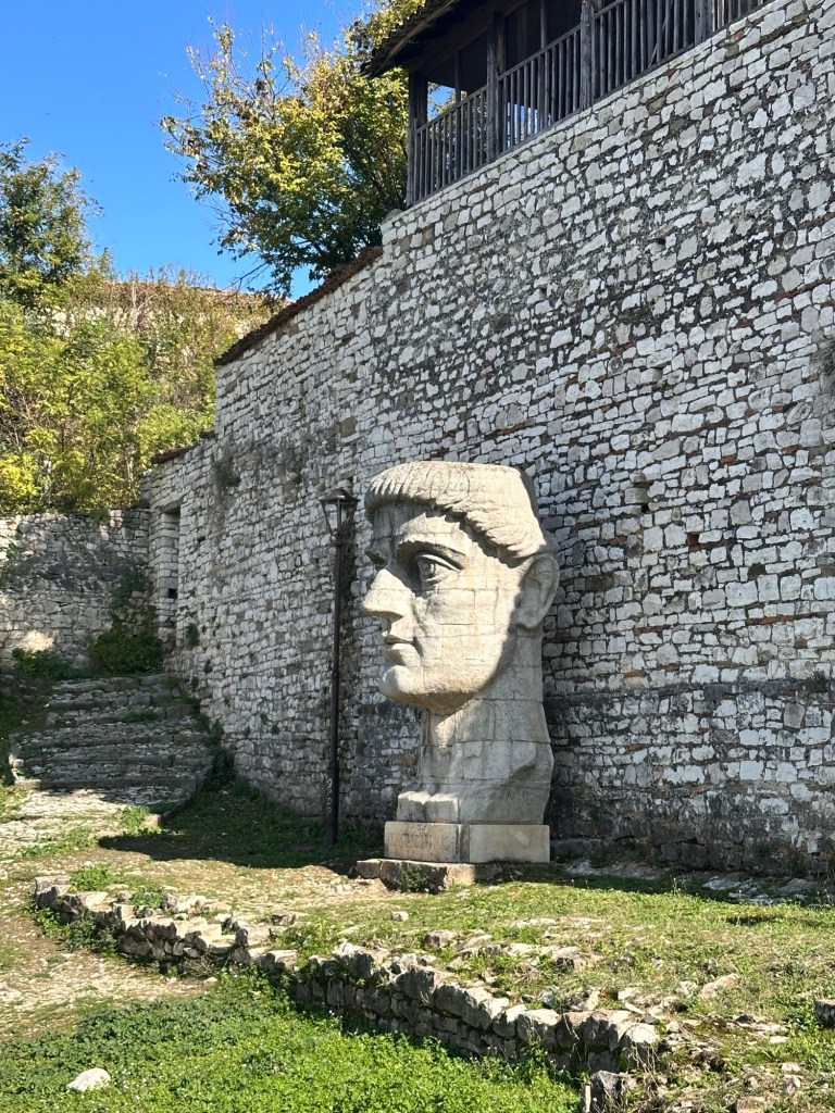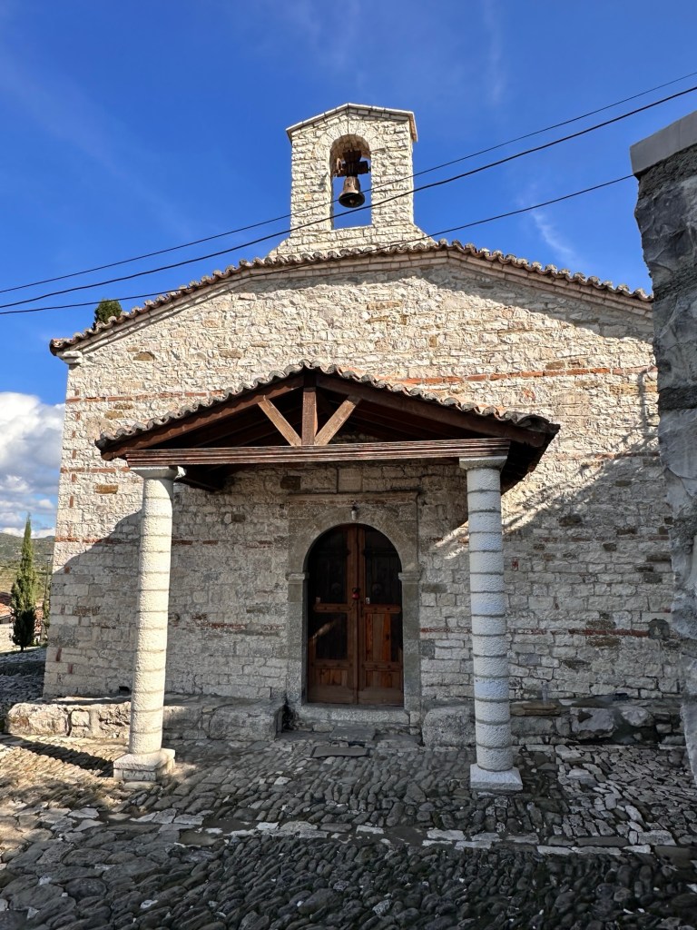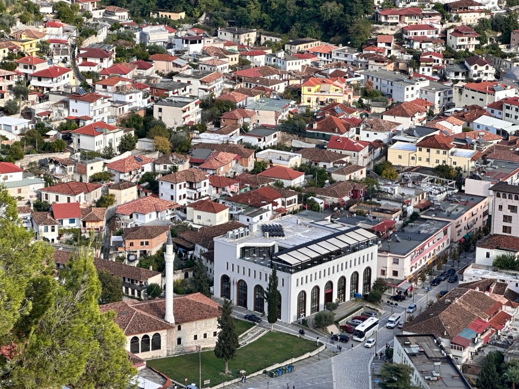 From here, we walked down a very very steep hill to Mangalemi, one of Berat’s historic quarters, located near the Osumi River. 15th Century Mangalemi was originally part of Berat’s Islamic old town; at the time, Christians historically lived across the river in the Gorica area. The houses here gave Berat the nickname “Town of 1000 Windows”. We walked along the cobblestoned lanes peering into the houses and shops – our knees and feet certainly knew about it by the end of the day!