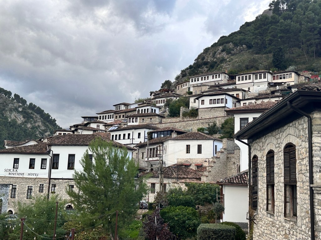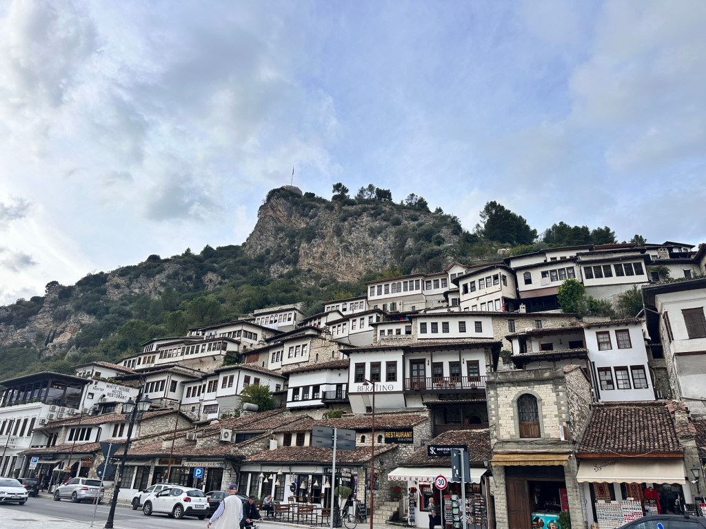We arrived to the riverside city of Berat just in time for lunch at a gorgeous little restaurant overlooking the mountains. Ready for a walking tour of Berat.