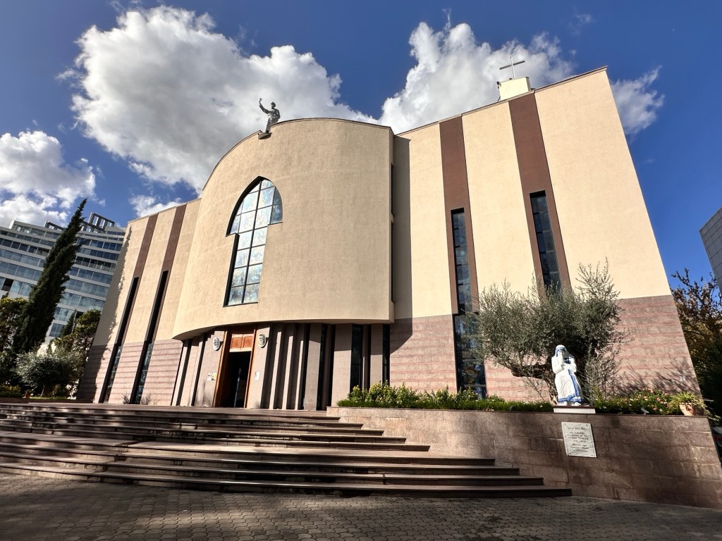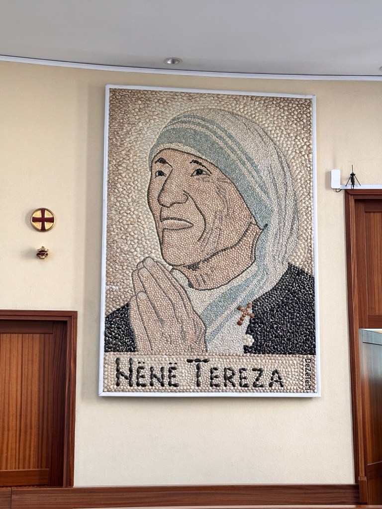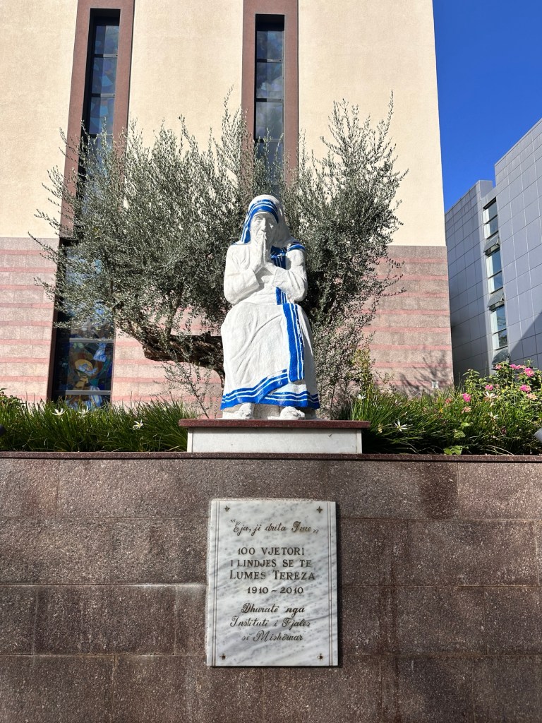 Nearby was St Paul’s Cathedral, a more contemporary church, where the inside space was austere and devoid of the usual detailed decorations associated with this type of religious building. Outside the cathedral stands a well-visited statue of Mother Teresa, or Nënë Tereza, the world-famous missionary nun, and also one of the most famous Albanians in history.