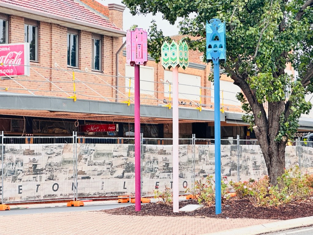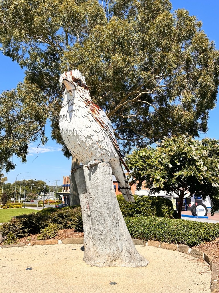 A walk around town didn’t take long. Many of the shops have closed unfortunately- we did find the bakery and a cafe for a little refreshment. The country wear shop had some nice clothes and accessories. Otherwise there was a pharmacy, shoe/toy/ hardware (all in one ) shop, plus the IGA, and of course a couple of pubs.Lovely gardens and sculptures around town.