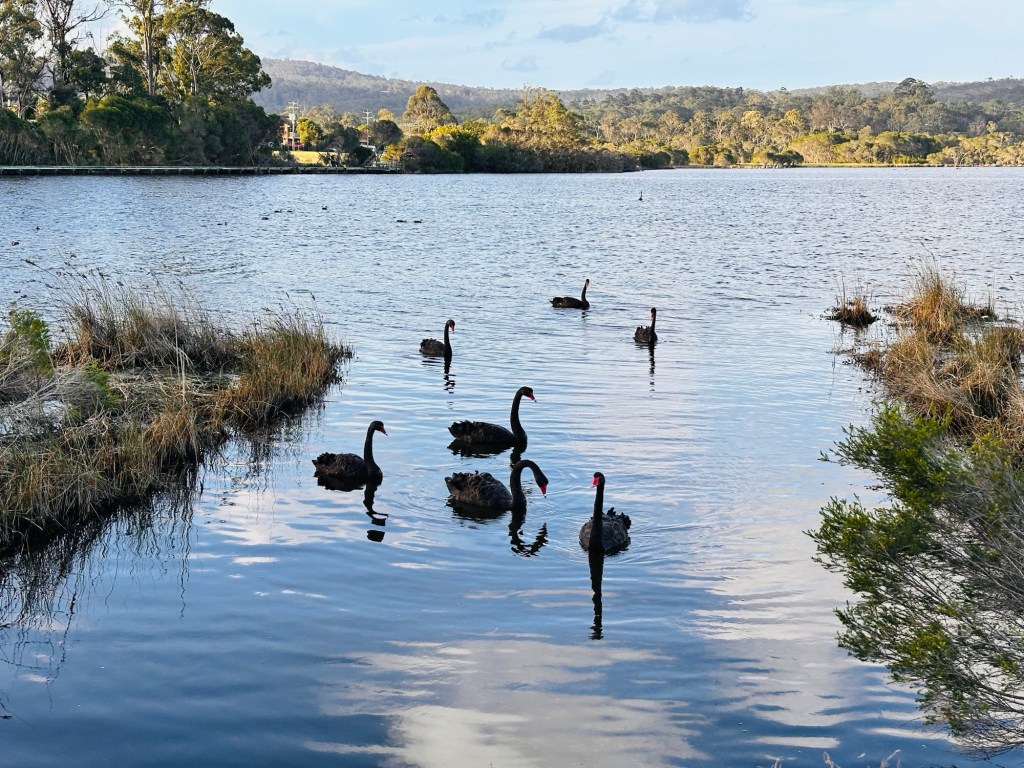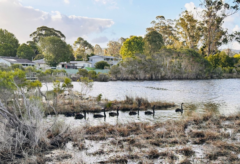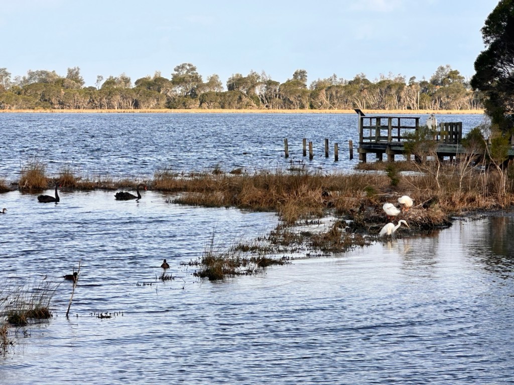 Easy stop tonight at the Yelarbon Recreation Reserve – $20 per night, and we could leave the van hooked up. Across the road was a pretty lagoon supporting abundant birdlife… and even more abundant giant Scotch grey mosquitos. They nearly carried us out of there!