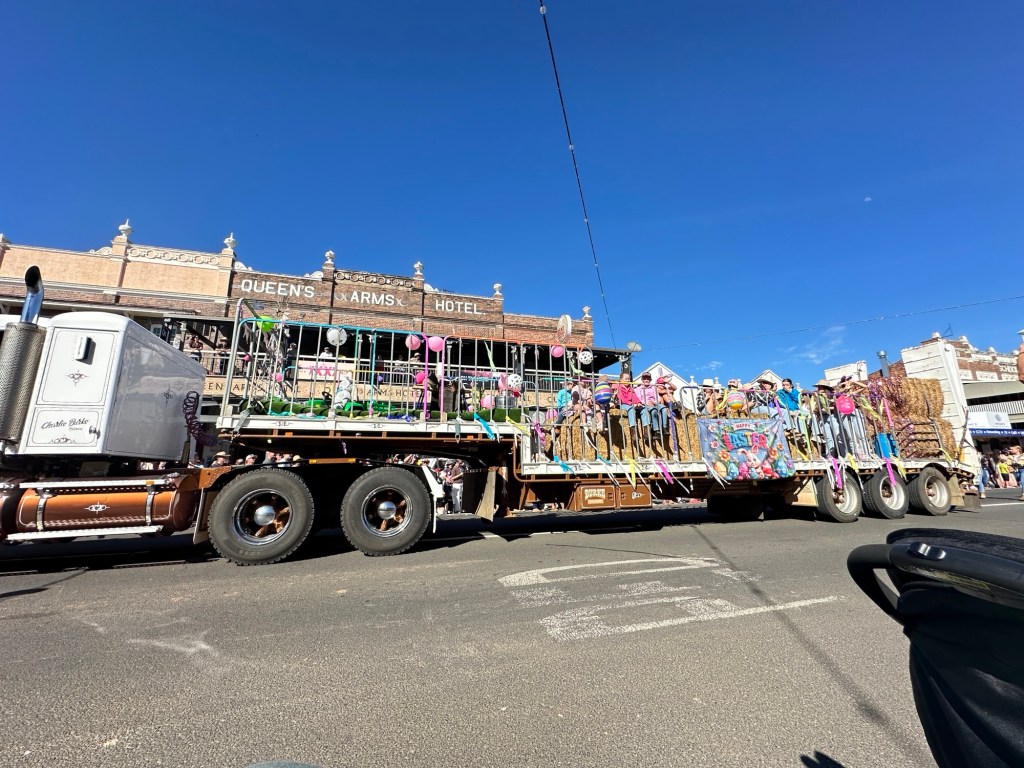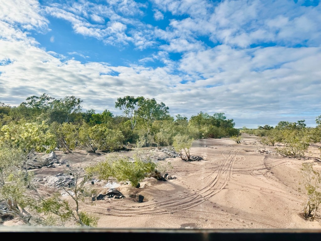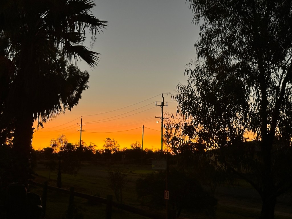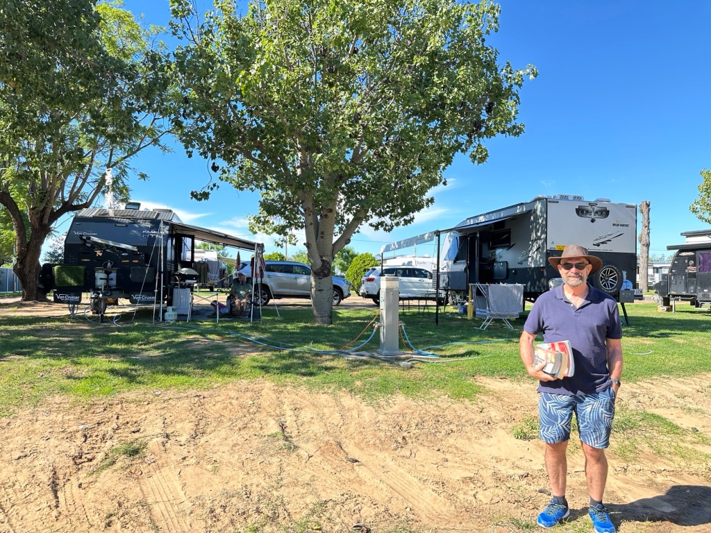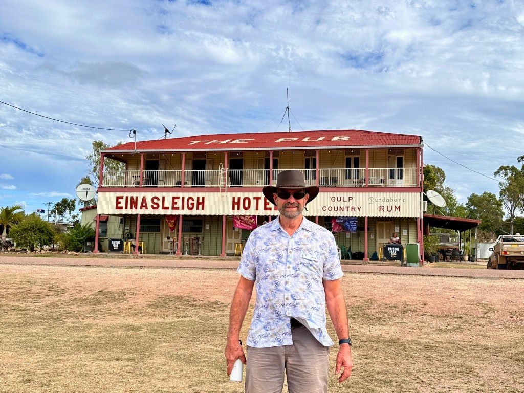 Another 40 kms to Nundigully. We were having a second attempt at Nindigully Pub. We had stayed here on Boxing Day 2023 – but it was closed. It only closes two days a year, and we had picked one of them! It was quite muddy this time so everyone was parked on the upper level near the pub…. and so did we! We weren’t risking getting bogged!
