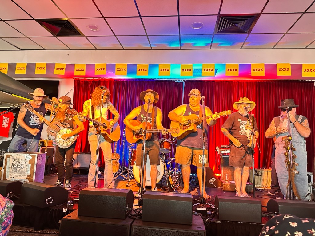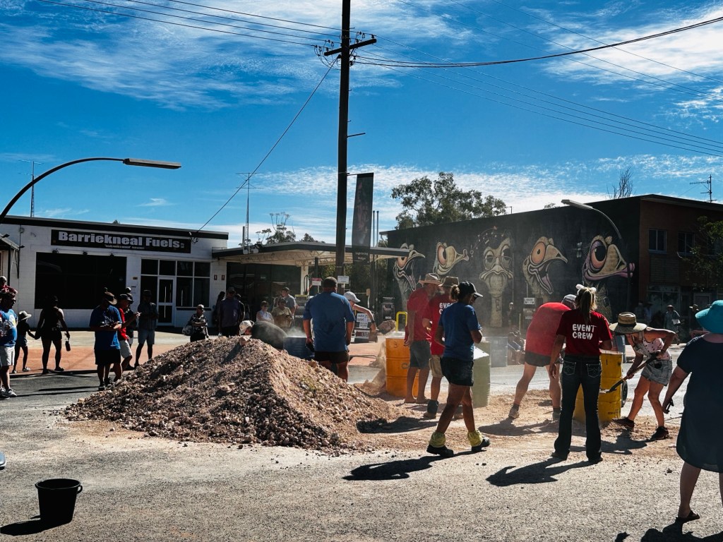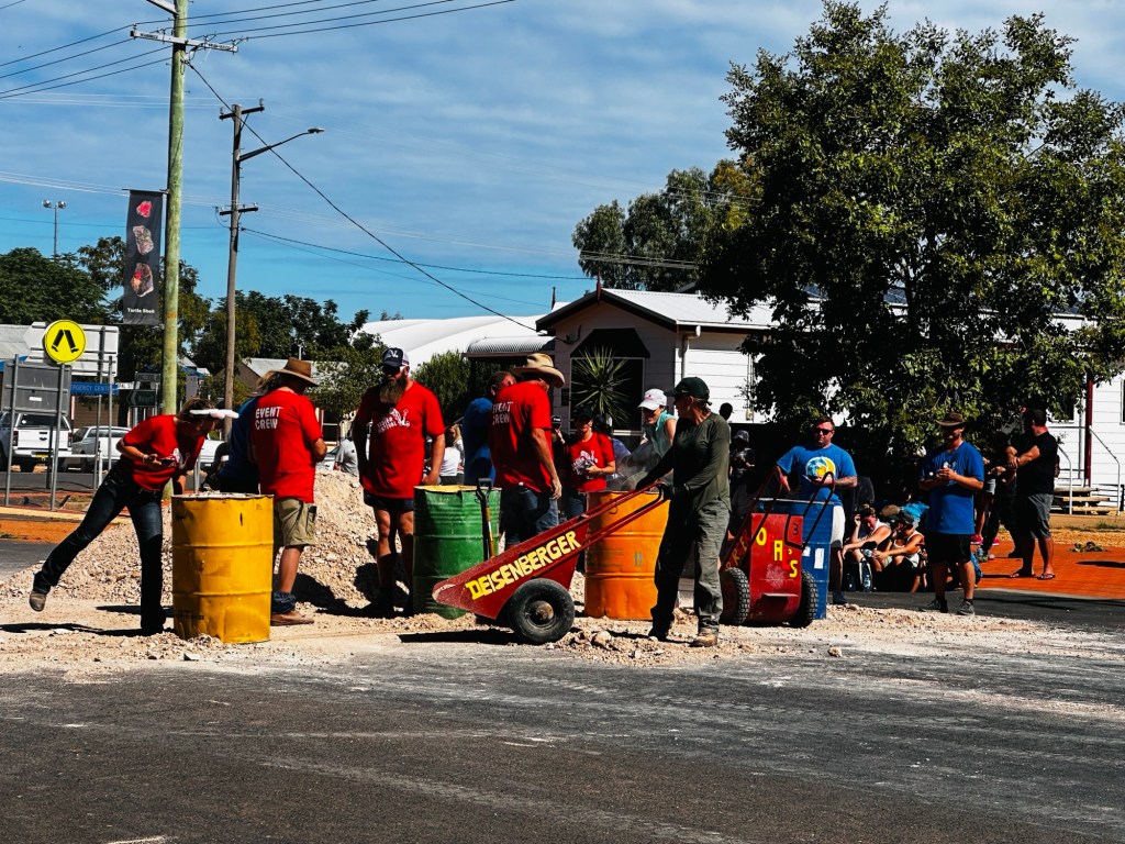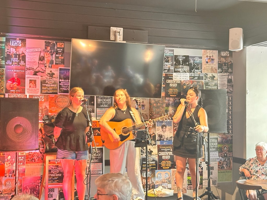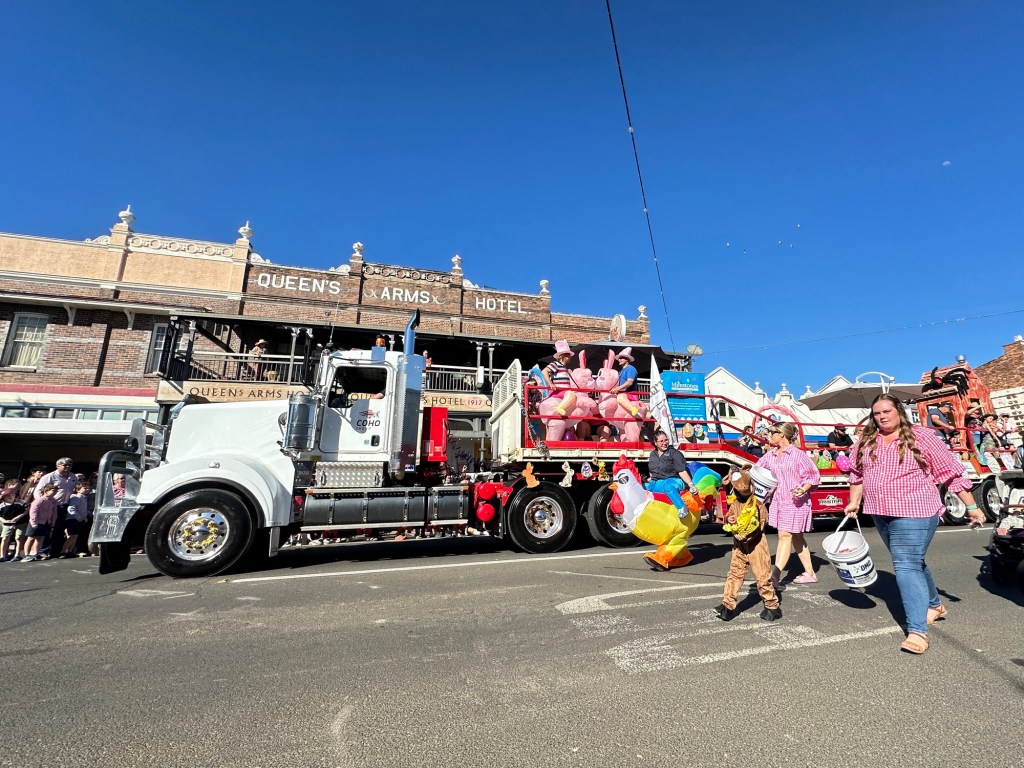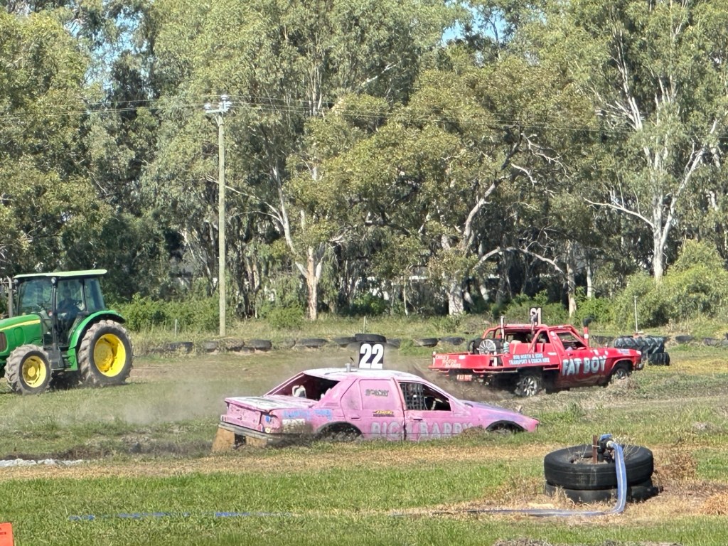 Another 40 kms to Nundigully. We were having a second attempt at Nindigully Pub. We had stayed here on Boxing Day 2023 – but it was closed. It only closes two days a year, and we had picked one of them! It was quite muddy this time so everyone was parked on the upper level near the pub…. and so did we! We weren’t risking getting bogged!