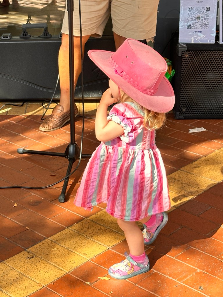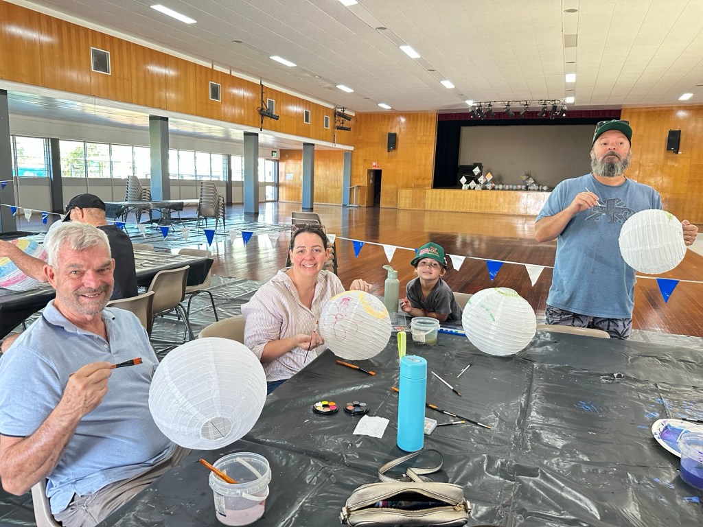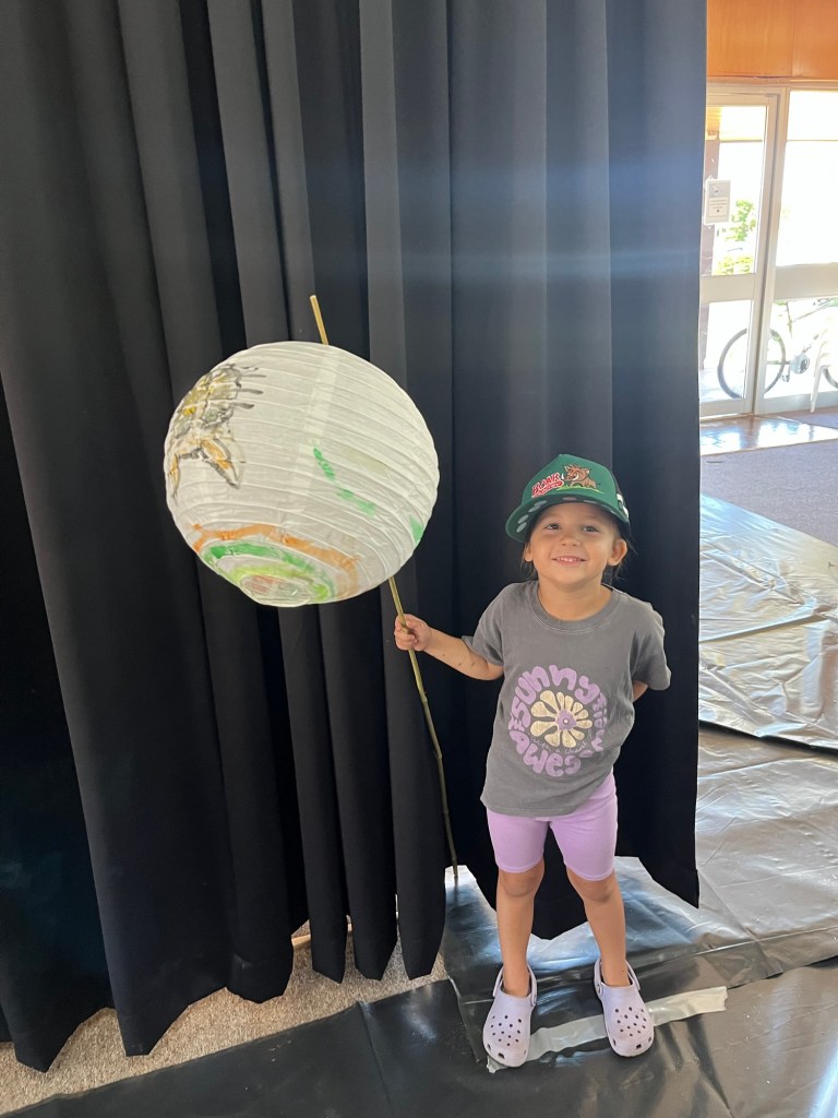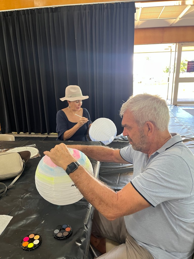 First day of the Festival, so we headed into town for the activities. Before long we were all busy painting our paper lanterns. Isla enjoyed doing this – she loves craft. There was also bush tucker and camp oven cooking demonstrations, circus acts for the children, and food vans. We felt we had seen enough so headed back for lunch.