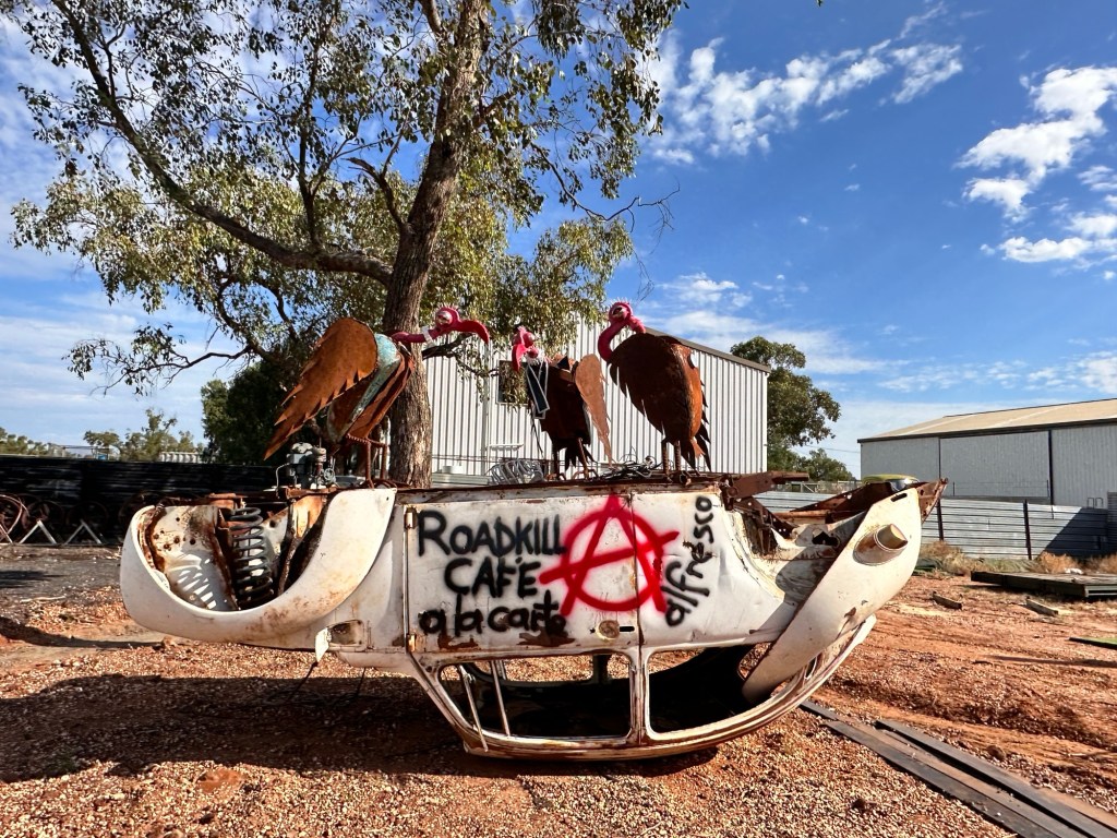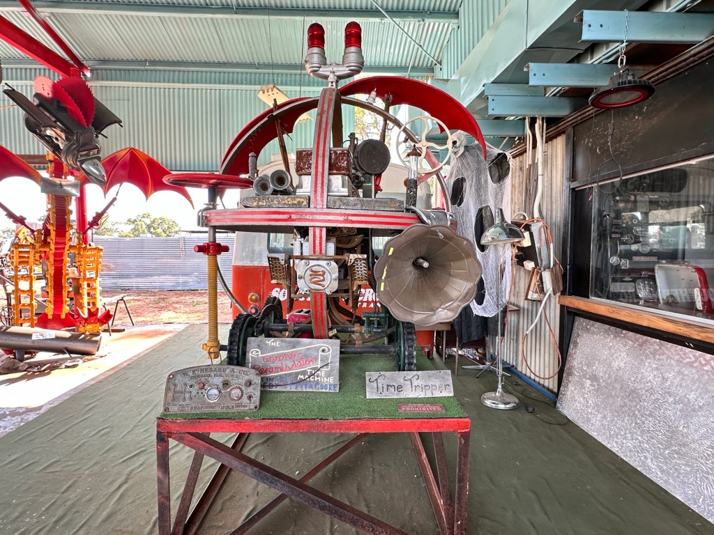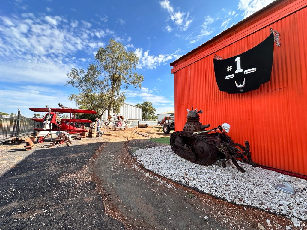 Mad Max Museum – Mad Max 2 (The Road Warrior) was filmed around Broken Hill and Silverton, Mundi Mundi Lookout, in 1981. The museum was full of memorabilia, props, photographs, working scripts and vehicles. Also went to John Dynon Art Gallery – some interesting displays (the outside looked like a collection of old bikes, VWs and other old parts) and artwork.