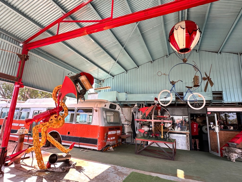 From here it was straight to the Pro Hart Gallery. Known for his depictions of working-class and outback life, Pro (Kevin Charles) Hart was an internationally renowned artist who worked across many forms and here we could see a wide range of Pro’s wonderful drawings, etchings and sculptures. Pro was an artisan, painter, collector, inventor, father, friend and husband. A former miner, many of Pro’s works were inspired by that life. Hart was also a performance artist who experimented endlessly with new forms of expression, a sculptor who loved metal and stone, and an inventor extraordinaire who loved tinkering in his back shed. The gallery is amazing – a bit intimate, a bit quirky and full of amazing art, stories and experiences.