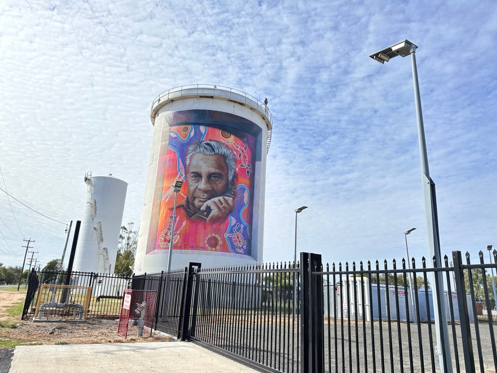 The Cunnamulla Water tower mural was painted in 2019 by international artist Guido Van Helten. The image represents the children and the future of the community.
