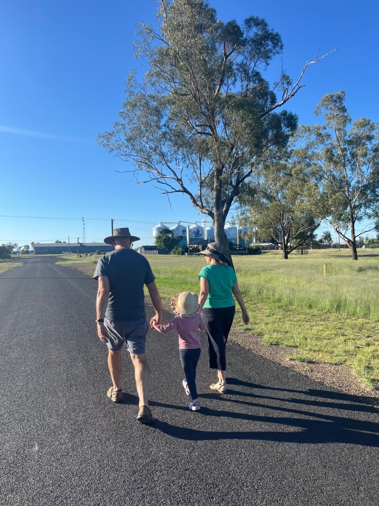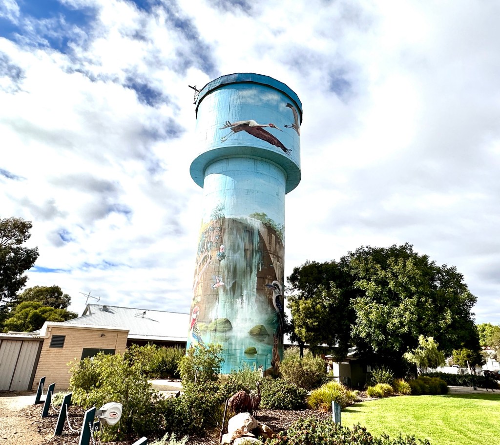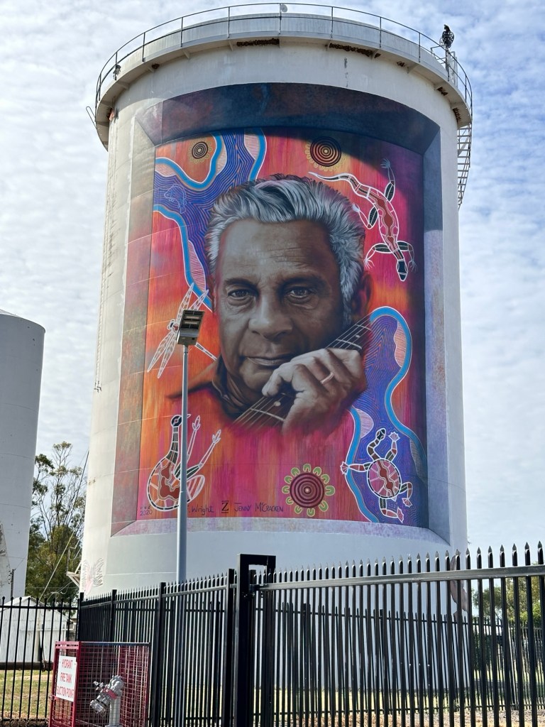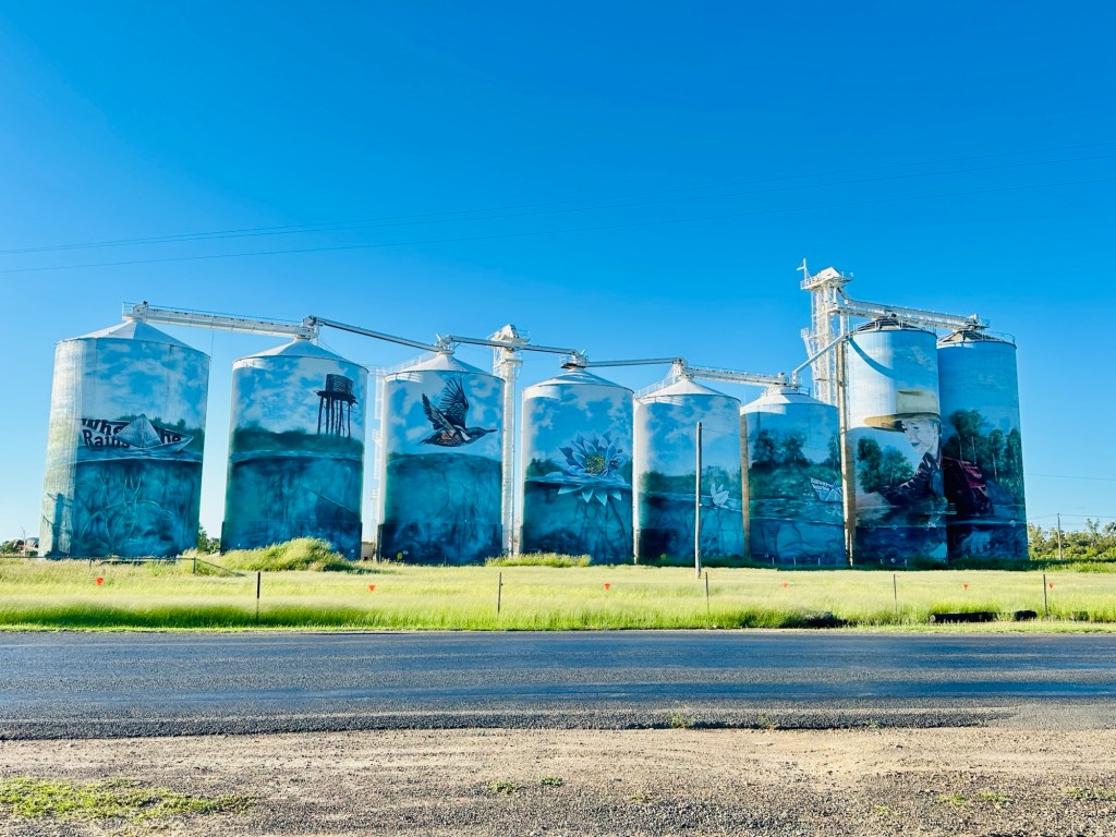 300 metres down the road were the famous painted Yelarbon silos – we walked down to get a closer look. One of the biggest silo artworks in Australia ‘When the Rain Comes’ conveys a sense of optimism and hope for the future while taking cues from the rich history of the community. The young boy sets paper boats afloat on the Yelarbon Lagoon, symbolising the ingenuity and craftsmanship of the town’s industries, past and present, that have carved out this oasis on the edge of the Spinifex Desert.