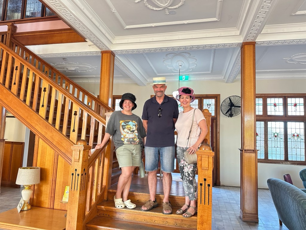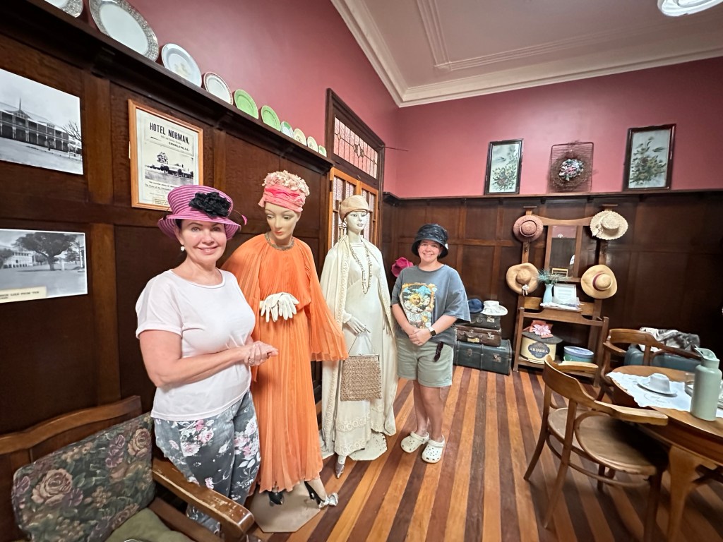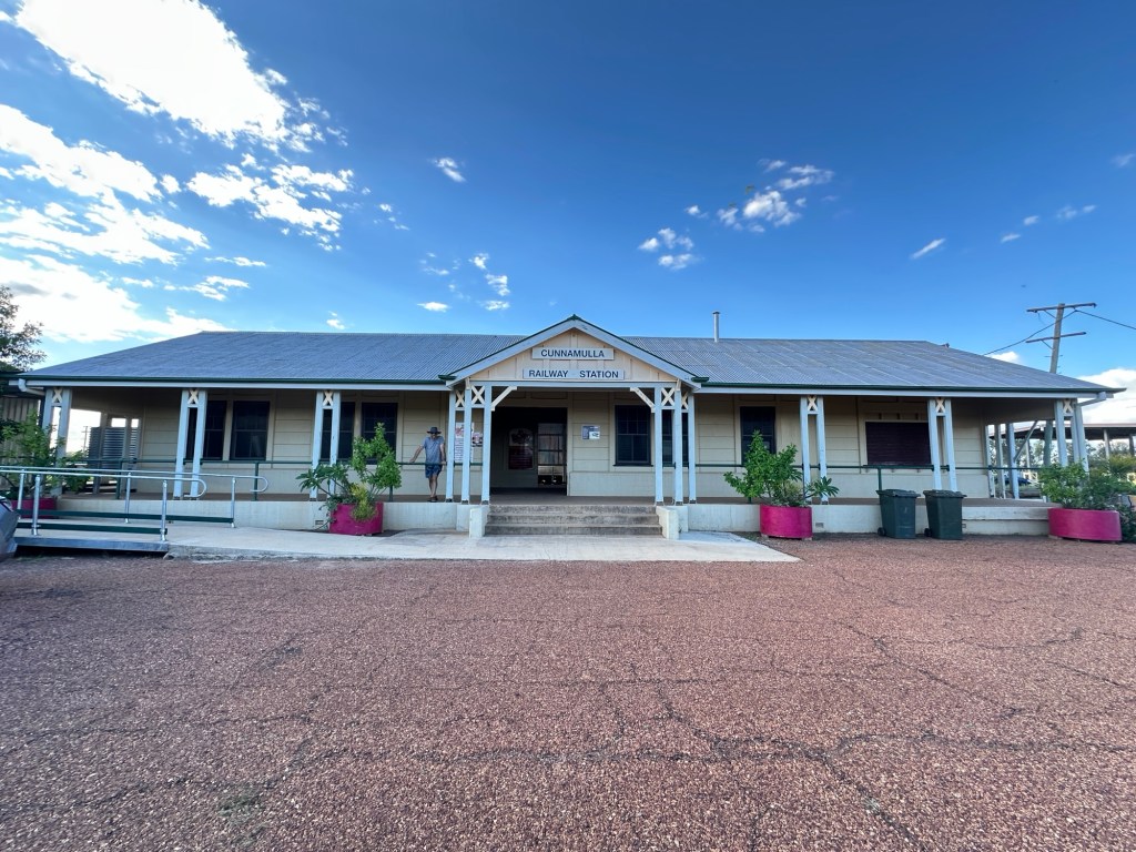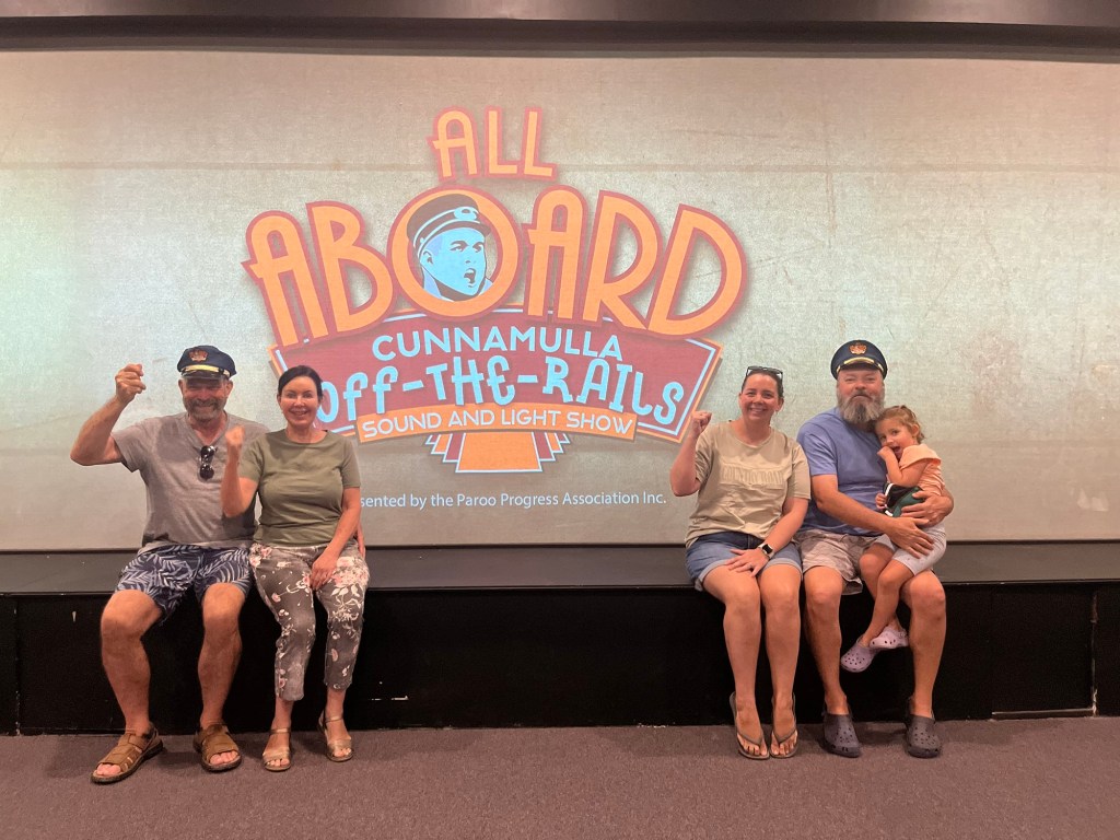 We set up camp then headed to the Visitor Information Centre where we met the lovely Karen. Little did we know we were going to get to see a lot of Karen. From here we went to the Railway Museum to see the All Aboard Light and Sound show – and who should be there to greet us – Karen. It was a great holographic show depicting the history of Cunnamulla and the importance of the railway to this little town. It was used to transport passengers from Cunnamulla to Brisbane until 1994, then freight until 2014, when an explosion destroyed the bridge at Wyandra (between Cunnamulla and Charleville). Train transport was very important for the wool industry and school kids. The town’s band was also significant during these years – they played at the station twice a week when passengers arrived.