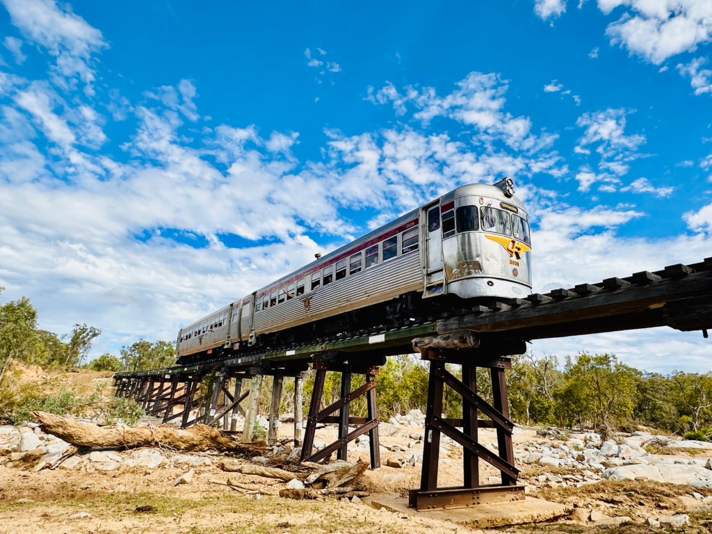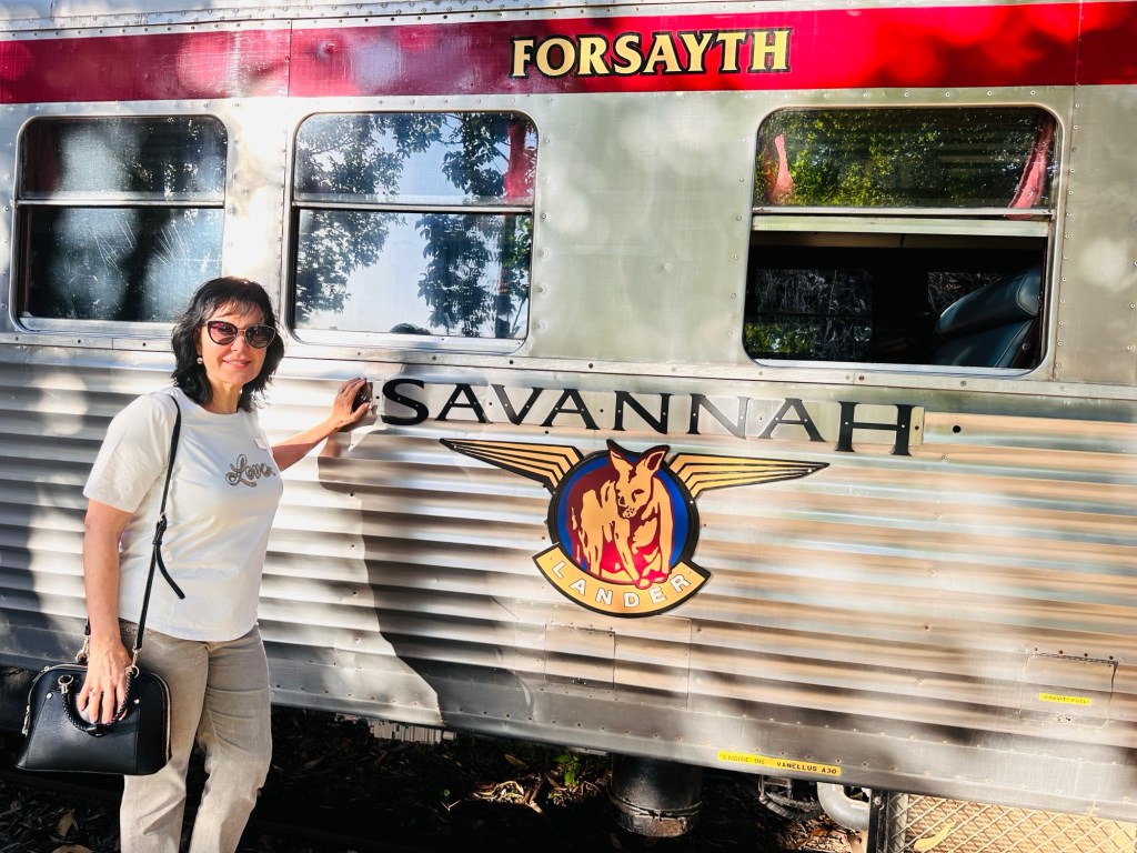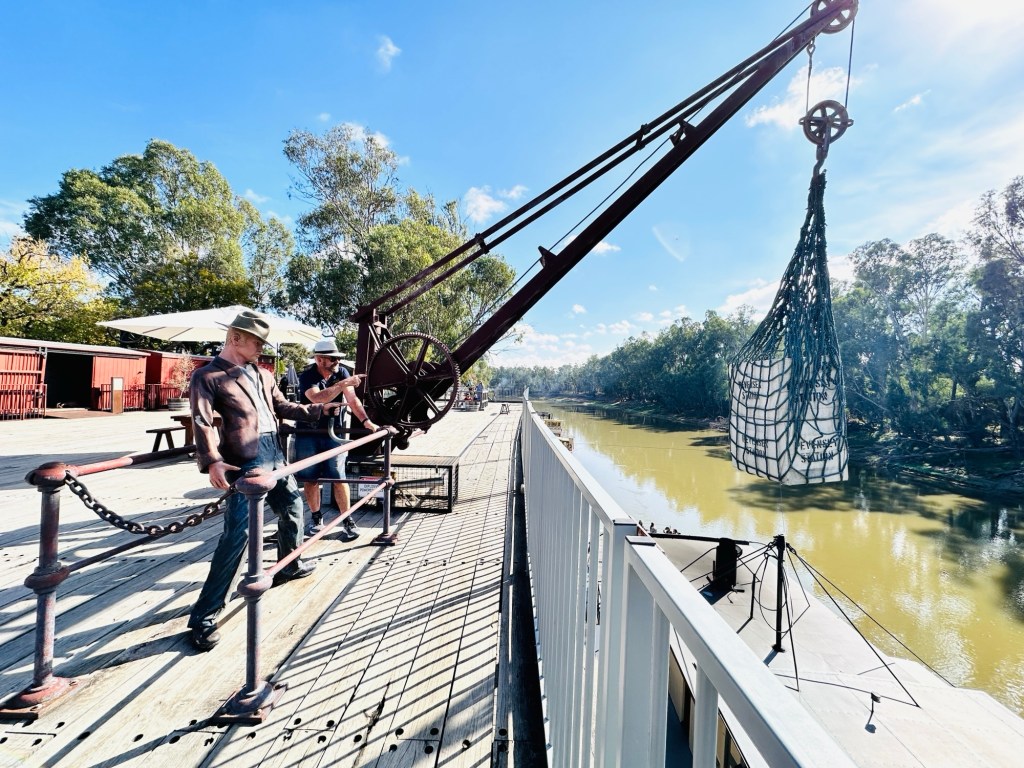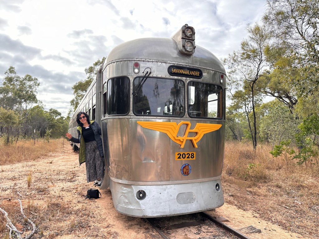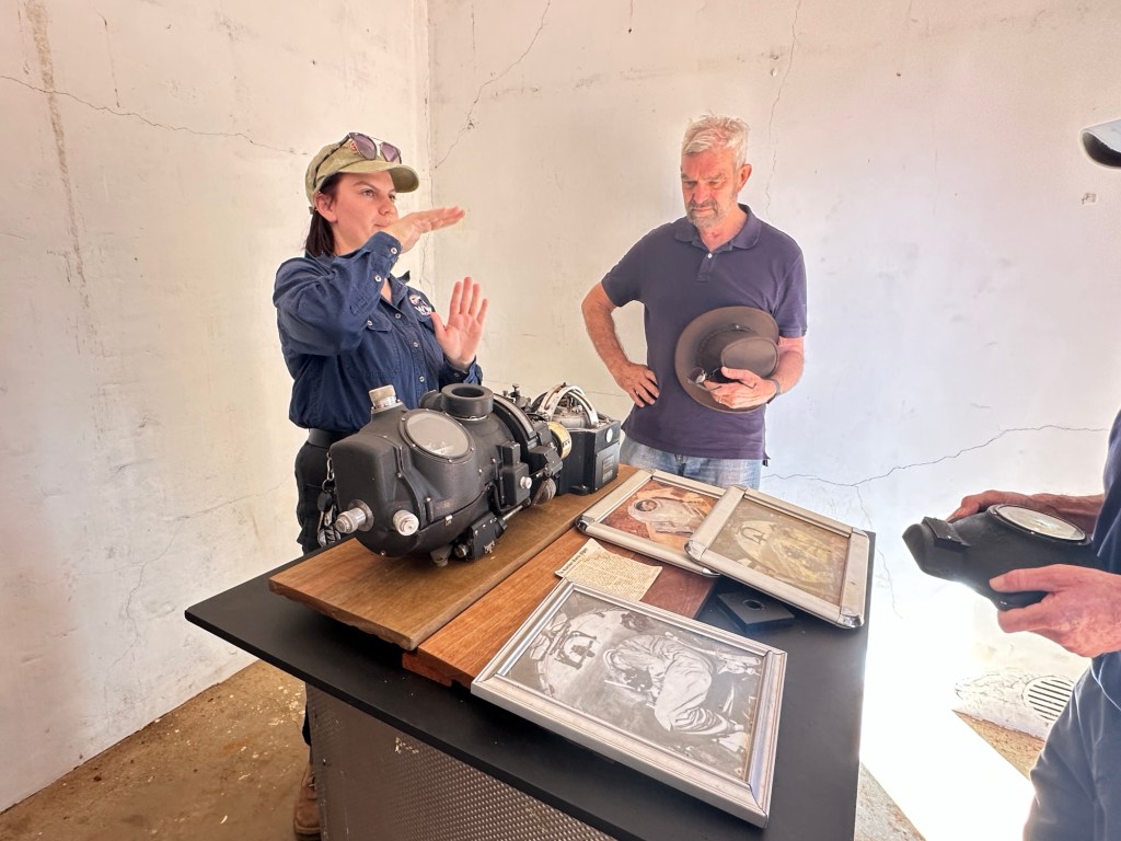 We set up camp then headed to the Visitor Information Centre where we met the lovely Karen. Little did we know we were going to get to see a lot of Karen. From here we went to the Railway Museum to see the All Aboard Light and Sound show – and who should be there to greet us – Karen. It was a great holographic show depicting the history of Cunnamulla and the importance of the railway to this little town. It was used to transport passengers from Cunnamulla to Brisbane until 1994, then freight until 2014, when an explosion destroyed the bridge at Wyandra (between Cunnamulla and Charleville). Train transport was very important for the wool industry and school kids. The town’s band was also significant during these years – they played at the station twice a week when passengers arrived.