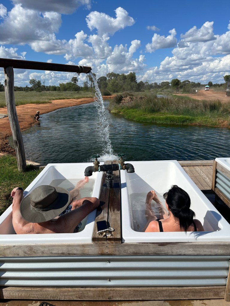 It was unfortunate that the roads to Eulo were still closed as our original plans were to spend a day there exploring the artesian baths, and also the Cunnamulla spa baths were closed. However, the Charlotte Plains hot spring baths were still accessible, so we drove 50 kms to get the rustic bath experience.