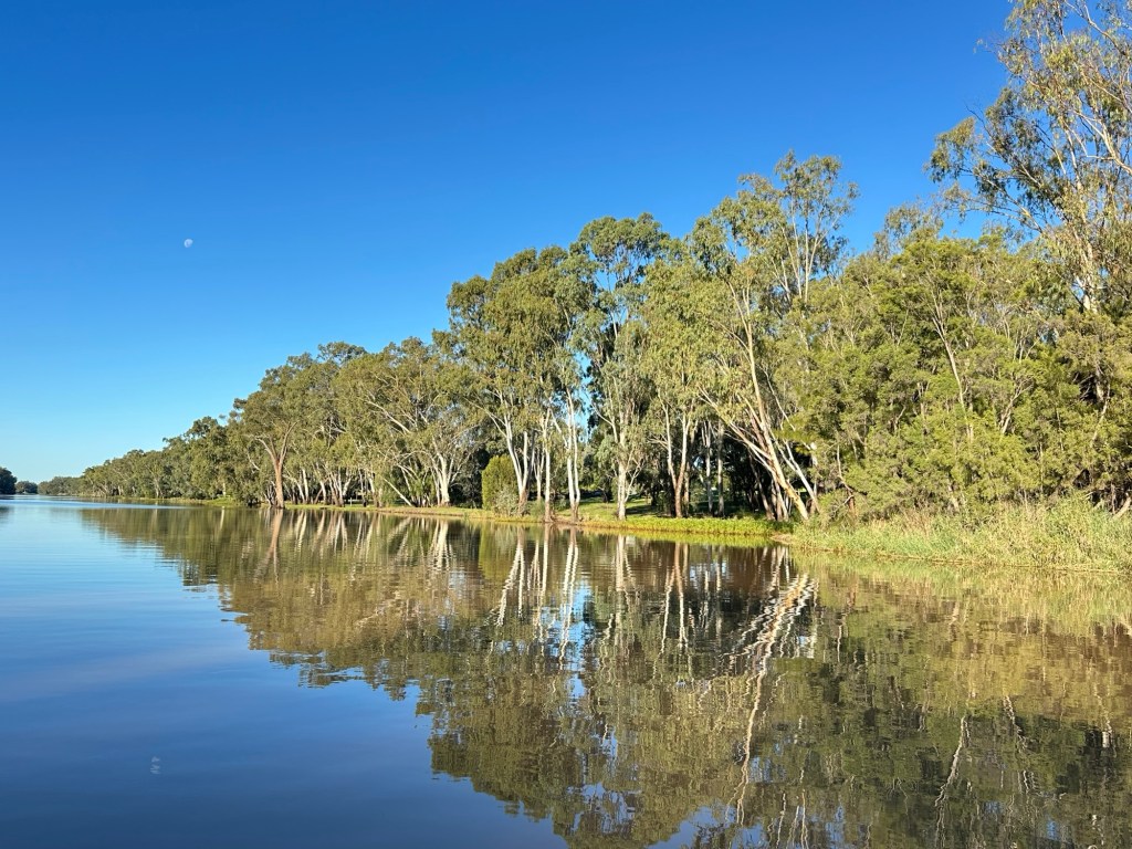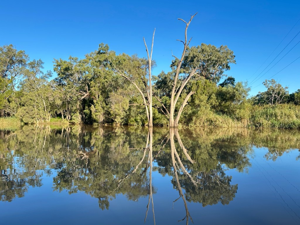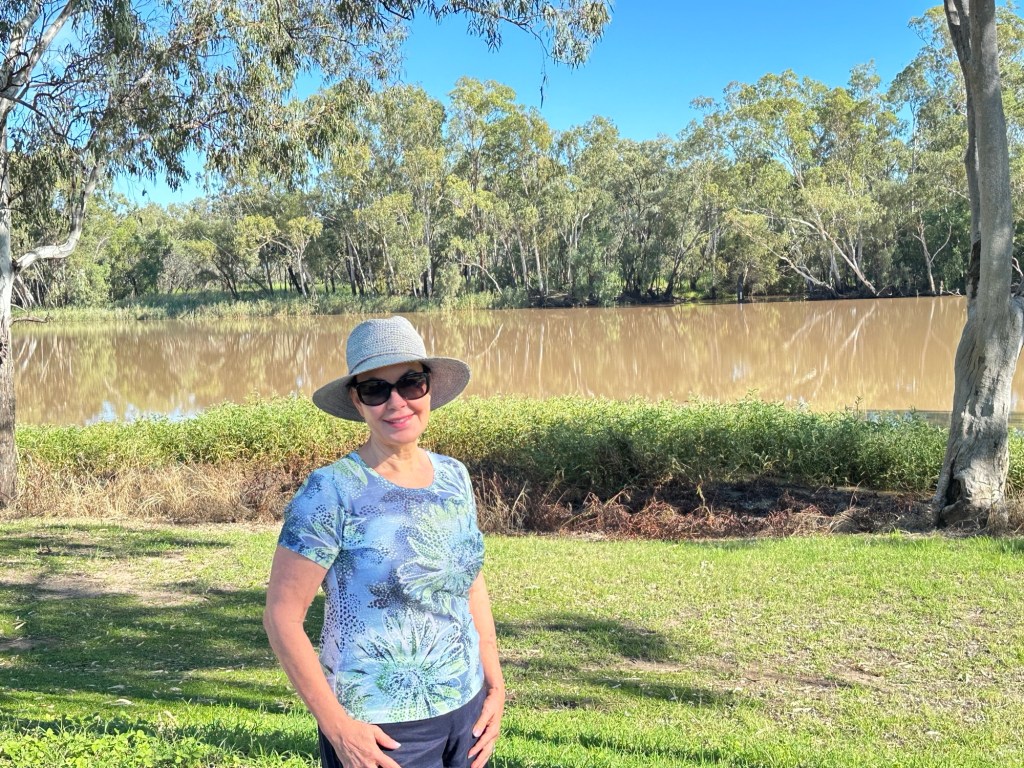 On the road again, and a couple of hours after driving past small crops and cotton farms, we arrived in St George. This time we stayed at the other end of town, at the River Gums Caravan Park, a lovely spot beside the Balonne River.
